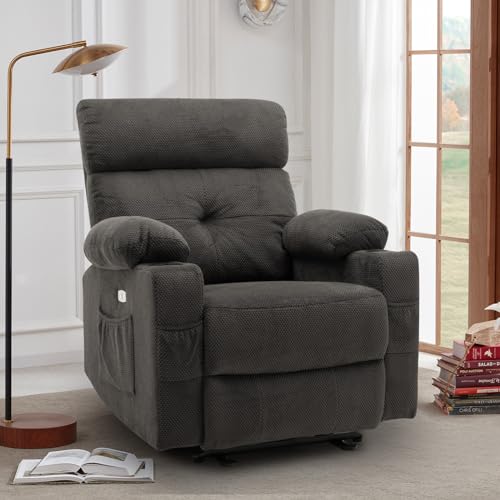 Power Recliner Chair,Wall Hugger Recliner with Heat and Massage,Massage Chair Recliner with 2 Side Pockets, USB & Type-C Port,Electric Recliner Chair for Living Room(Blue)
