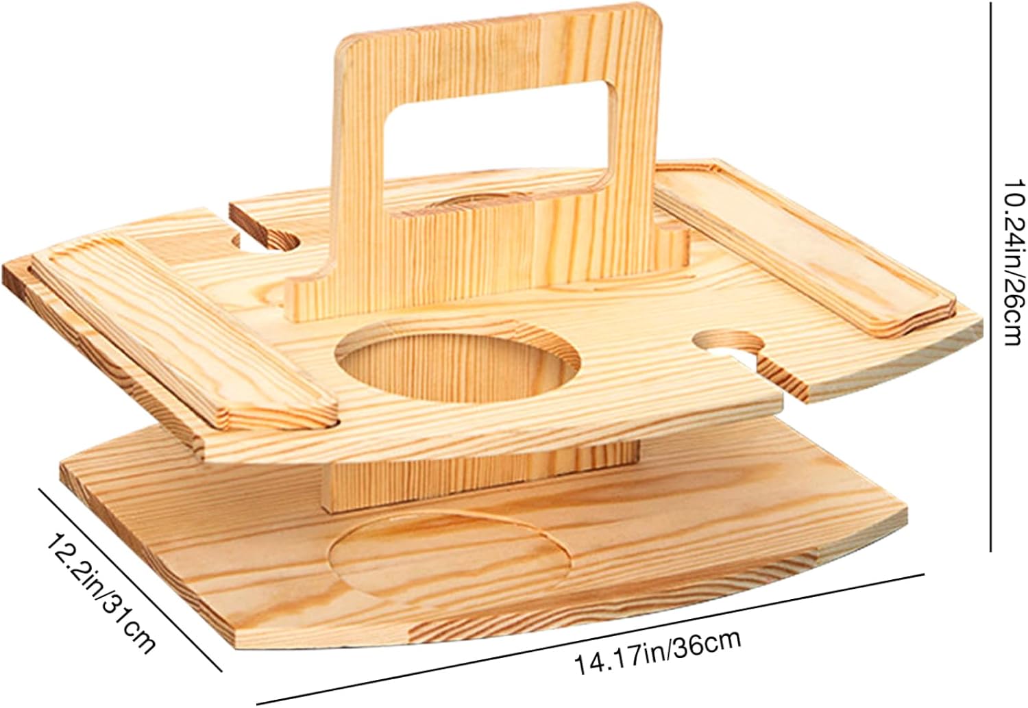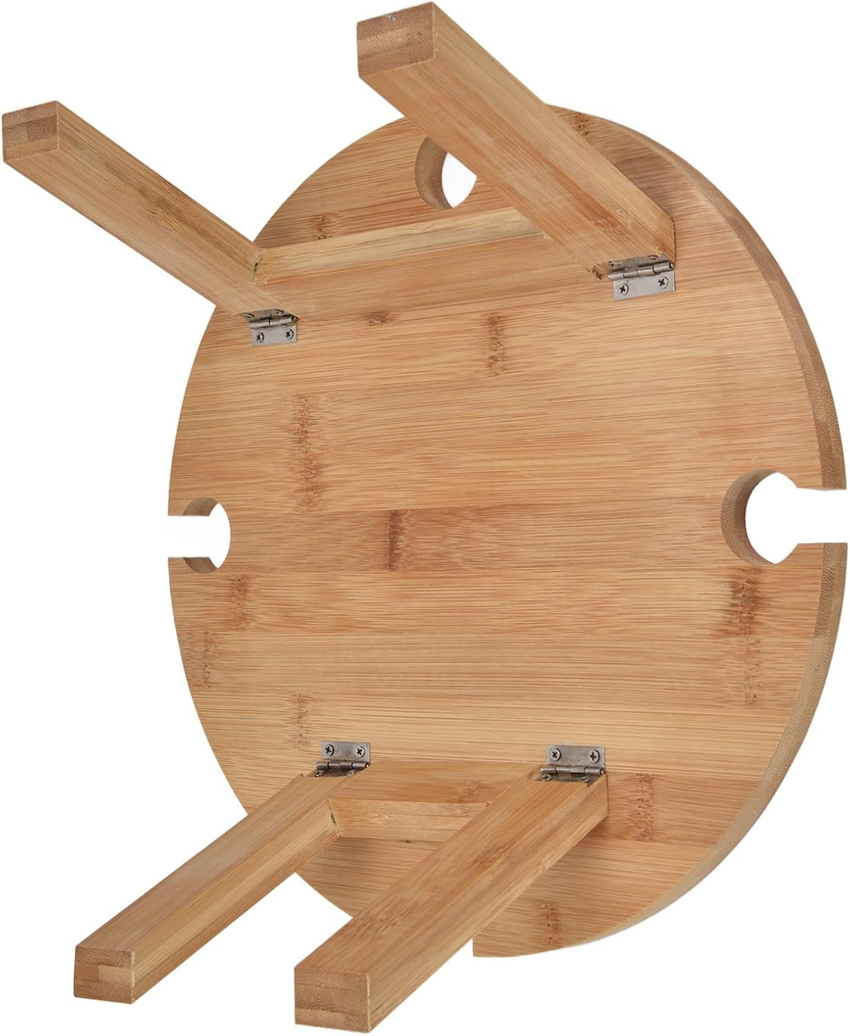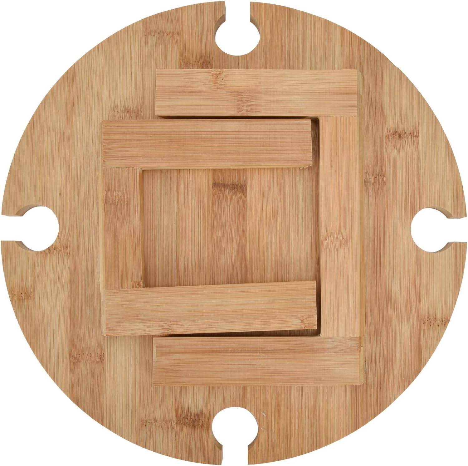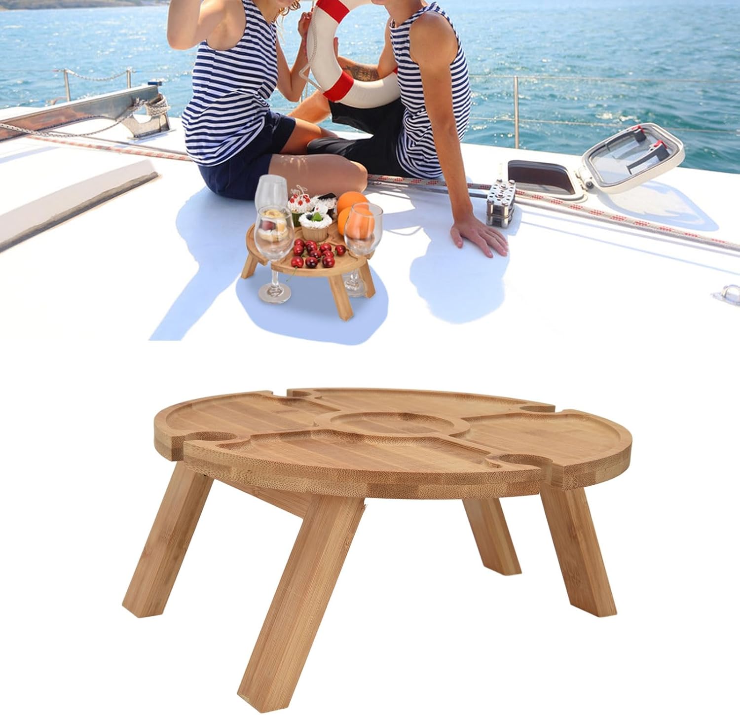 Folding Picnic Table with Wine Glass Holder, Portable Wine Table, 2 in 1 Portable Wine Glass Rack and Compartmental Dish Outdoor, Snack Tray Table for Cheese and Fruit, Camping, 11.8 in Diameter