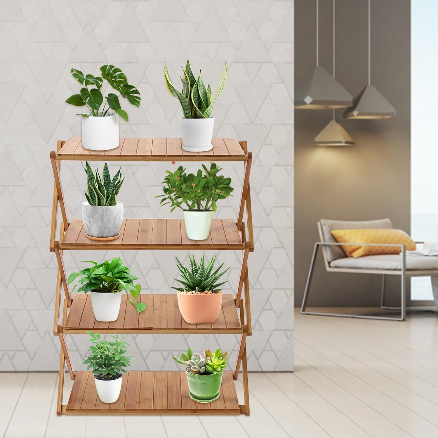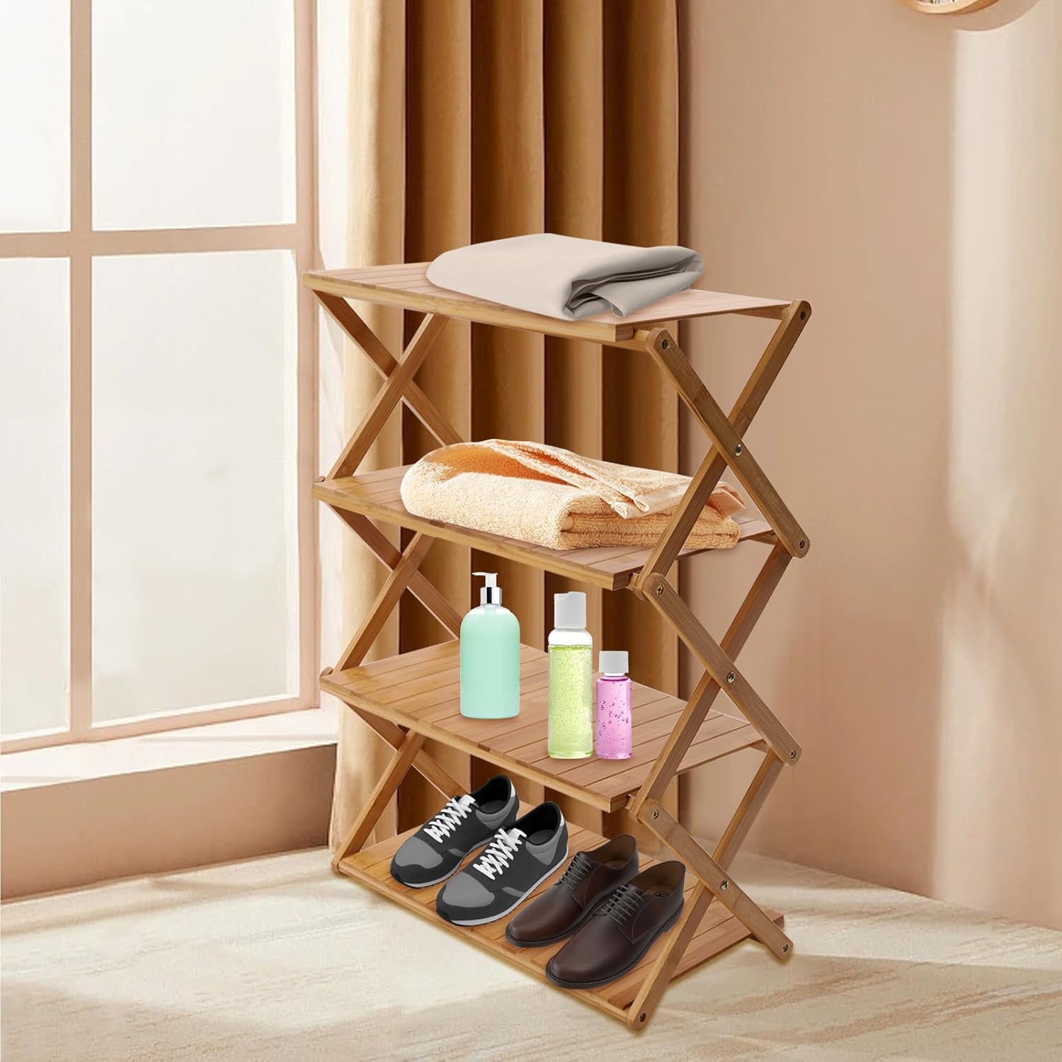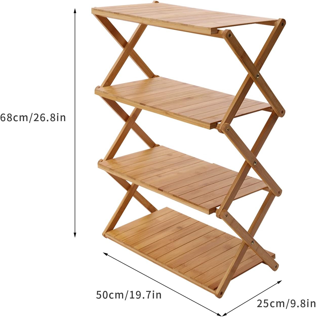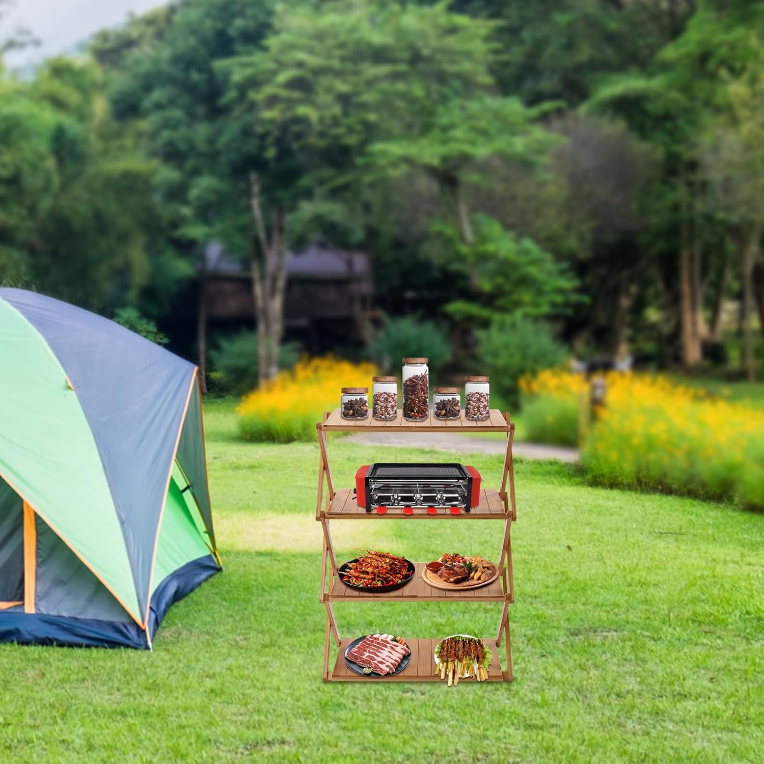 4-Tier Wooden Folding Outdoor Camping Table, Portable Bamboo Travel Camping Shelf, for Outdoor Indoor, Lightweight Storage Shelf for Patio, Garden, Backyard, Picnic, BBQ, Party