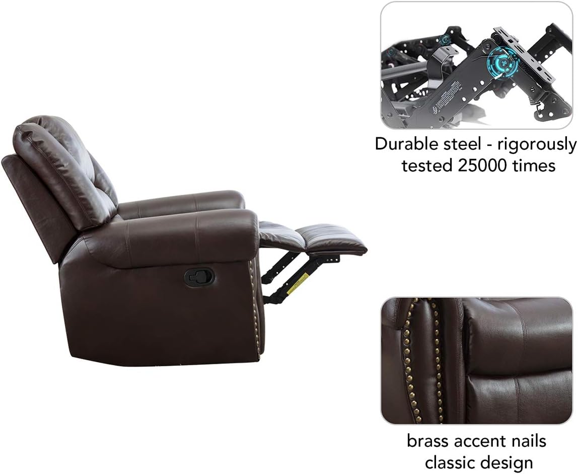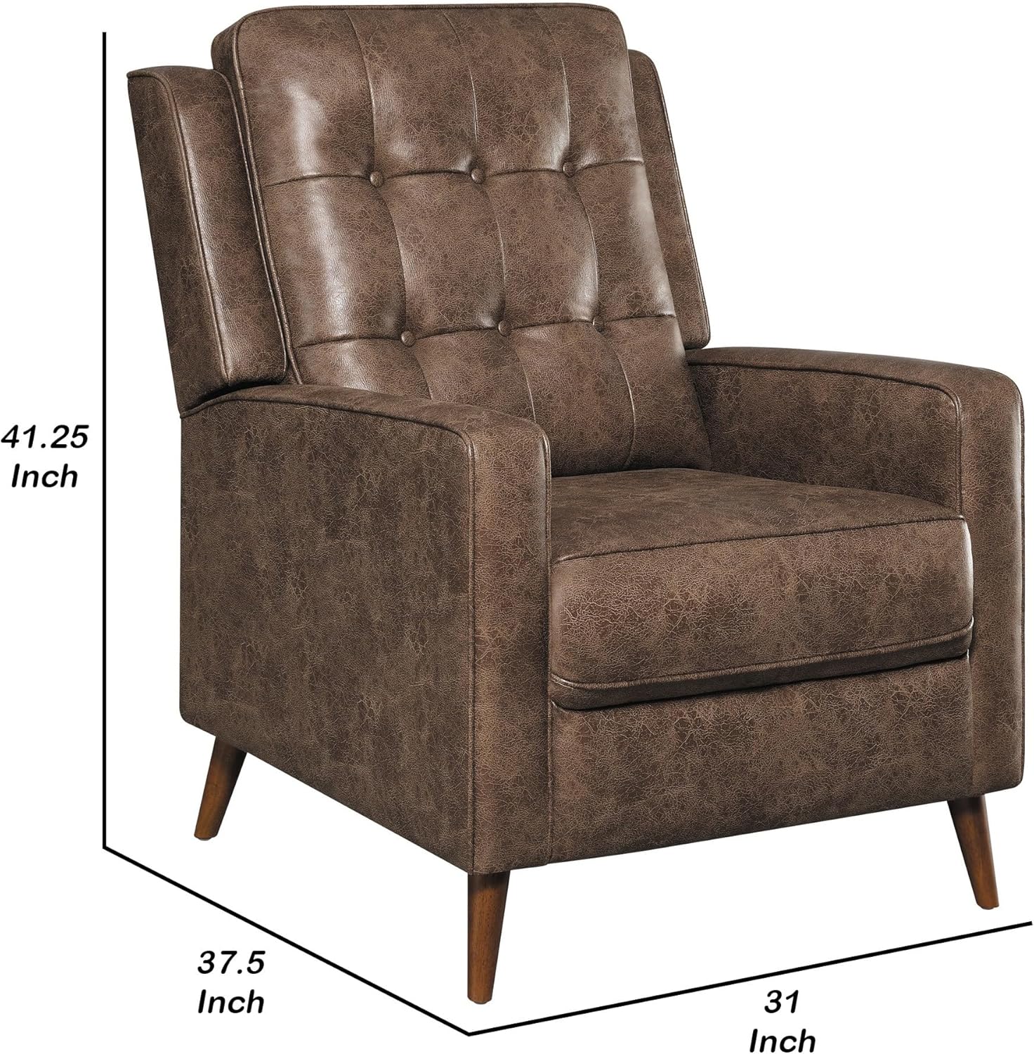 Benjara BM295080 31 in. Push Back Faux Leather Recliner with Tufted & Tapered Legs Brown