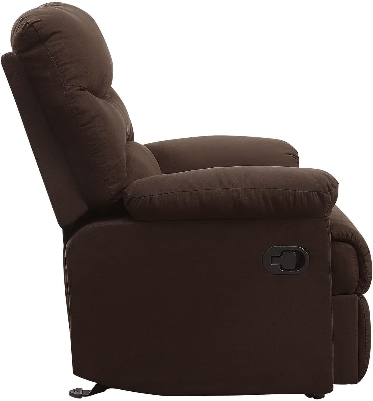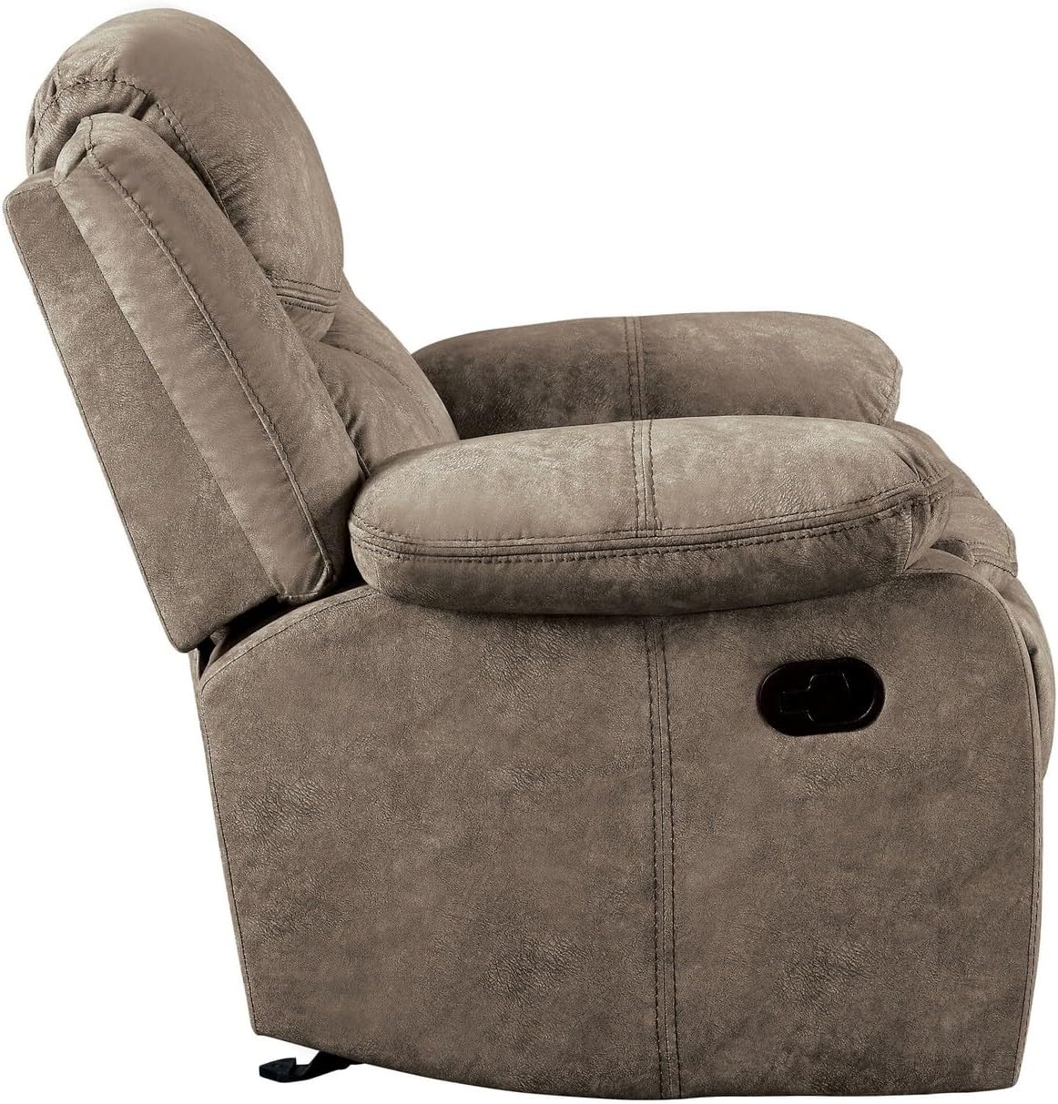 Benjara 39 Inch Manual Recliner Armchair, Microfiber Polyester, Pull Tab, Brown