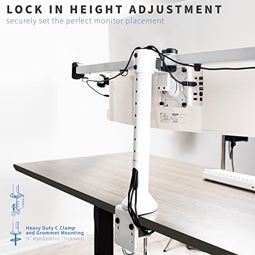 VIVO Triple 23 to 32 inch LED LCD Computer Monitor Desk Mount VESA Stand, Heavy Duty Fully Adjustable Tilt, Swivel, and Rotation, Fits 3 Screens, White, STAND-V103W