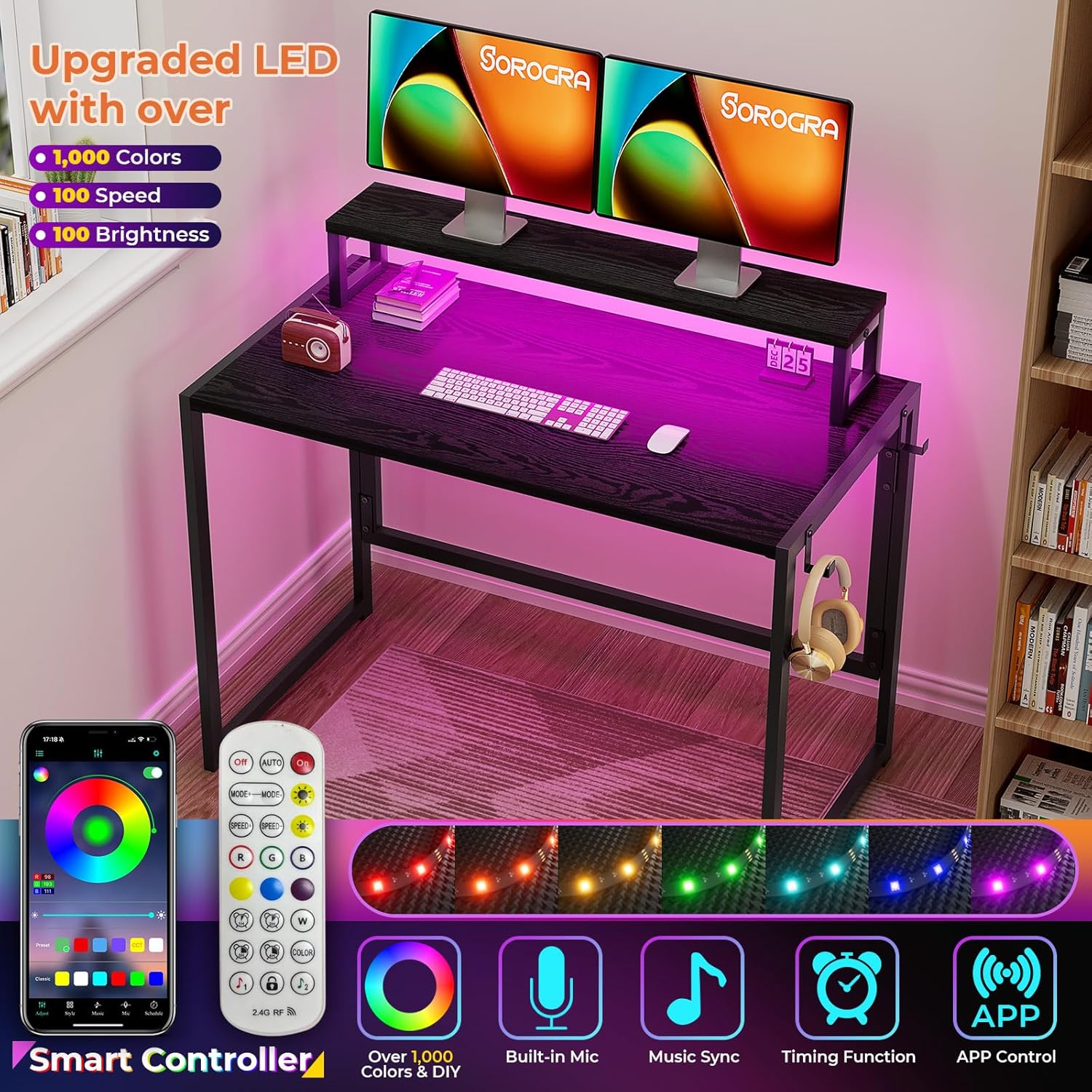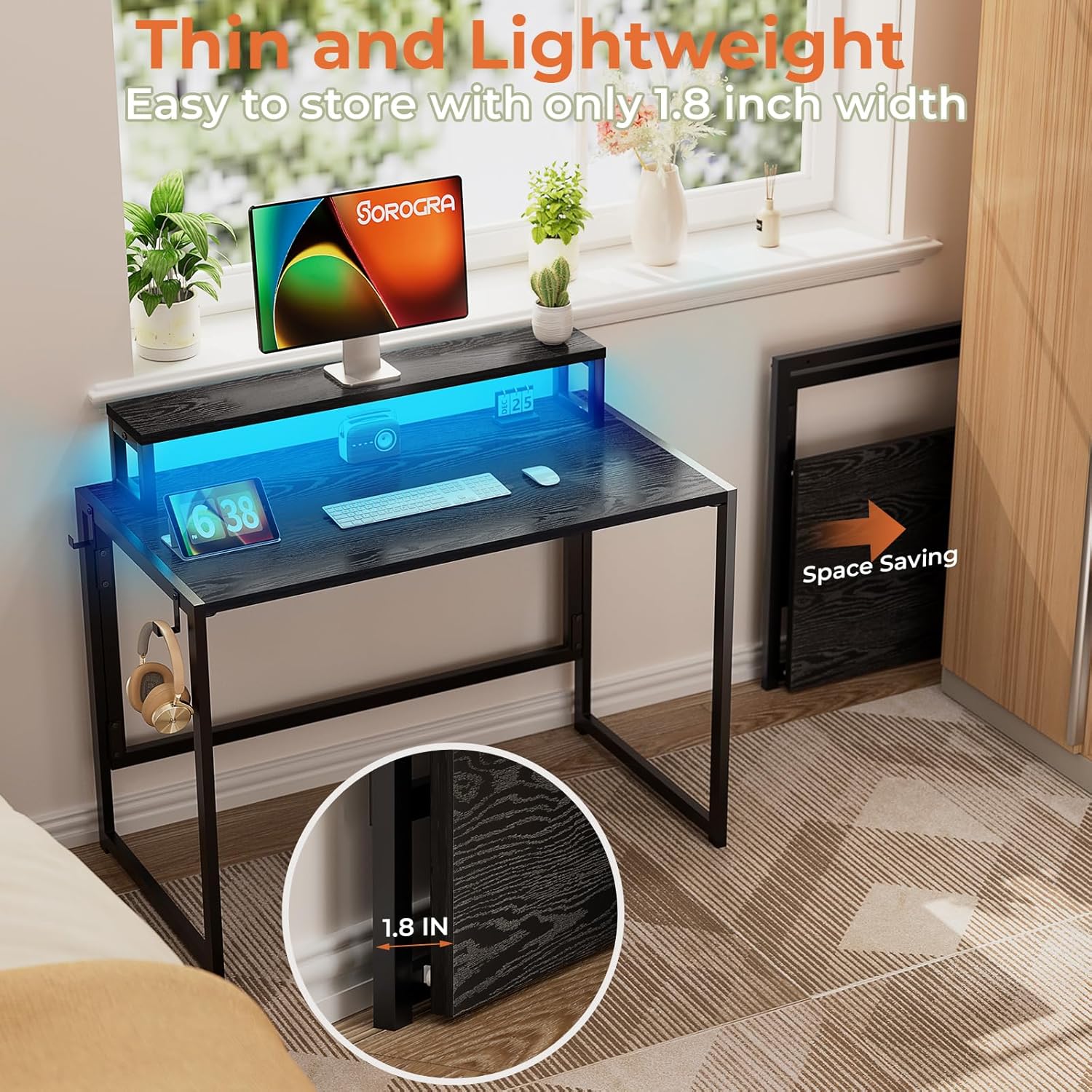 Coavas 31.5 inch Folding Desk No Assembly Required, SOROGRA Folding Desk Small Foldable Desk 39.4 inch with Led Lights