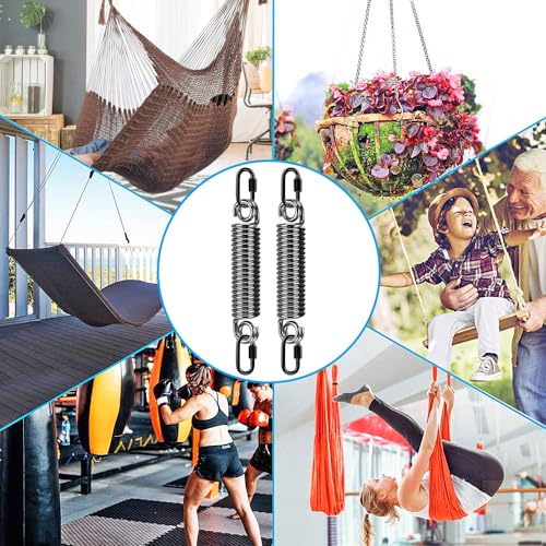 SELEWARE Heavy Duty Swing Springs for Hammock Chair, Porch Swing, Hammock Stands Mount, Double Closed Ring Design Up to 400 lbs, w/Locking Carabiners