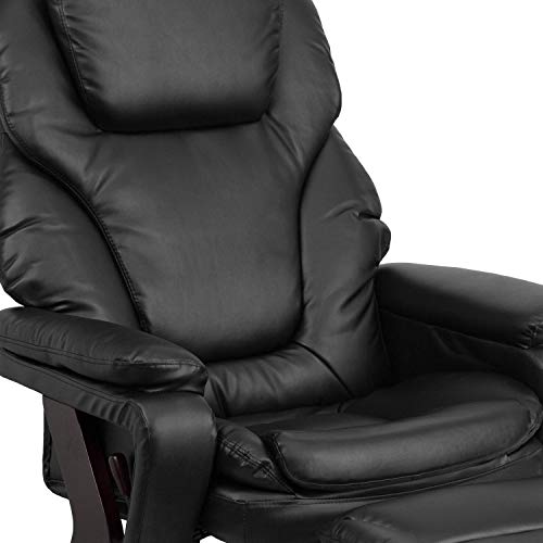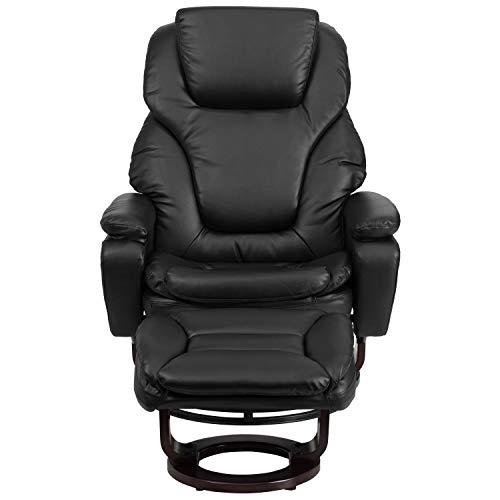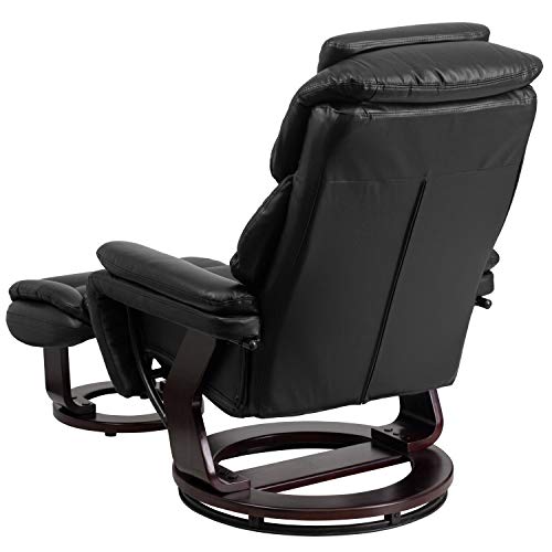 EMMA + OLIVER Multi-Position Recliner & Ottoman with Swivel Wood Base in Brown Microfiber