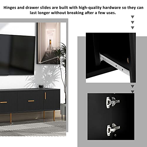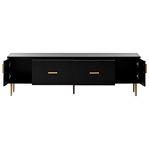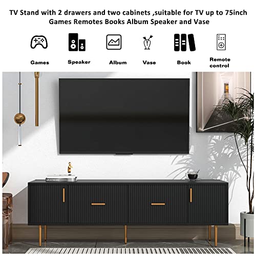 Modern TV Stand Entertainment Center Storage Cabinet with Drawers and Cabinets, TV Stand for TVs up to 75 Inches, Wood TV Console Table with Gold Metal Legs and Handles for Living Room (White-TV)