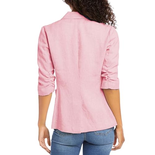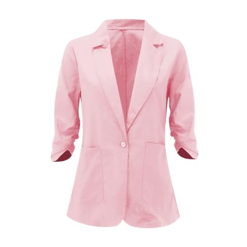 Linen Blazer Women 2024 Summer Business Casual Short Sleeve Outfits Work Office Lapel Button Suit Blazer