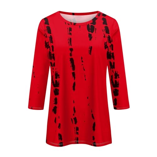 Womens Tops 3/4 Sleeve Shirts Round Neck Loose Casual Blouses Floral Print Shirts, Small
