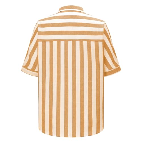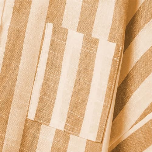 Women Button Down Striped Shirts Cotton Linen Summer Blouse Collared Short Sleeve Comfy Tops Work Office Wear Clothing