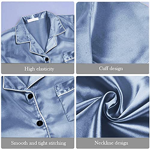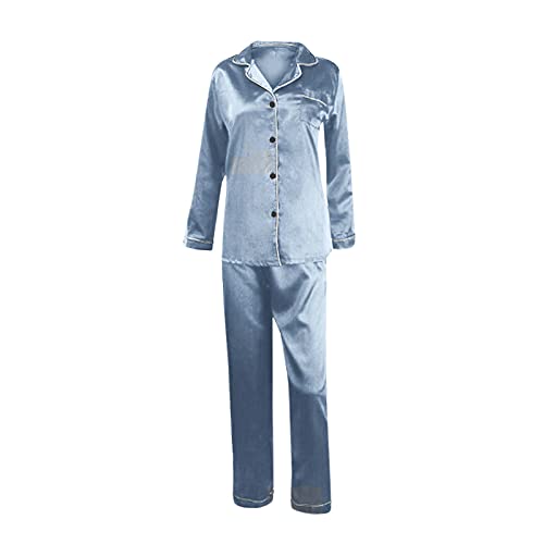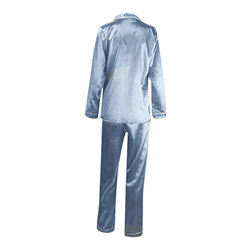 Women's Pajama Sets Silk Satin Pajamas Loungewear Two-piece Sleepwear Button-Down Long Sleeve Pajamas with Pockets