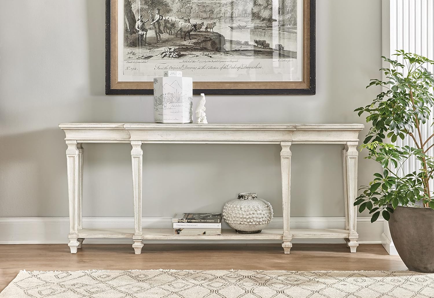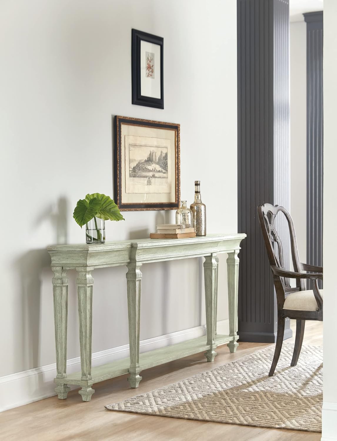 Hooker Furniture Traditions Console Table in Distressed Beige Wood Finish