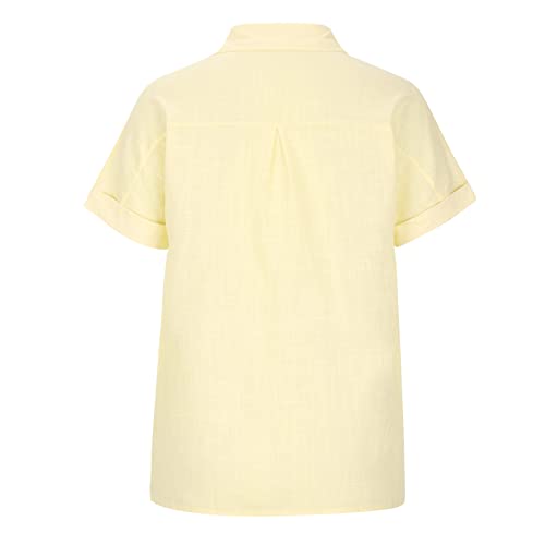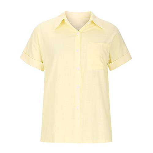 Ceboyel Women 2024 Causal Summer Blouses Button Down Short Sleeve Shirts Gauze Cotton Linen Tops Vacation Trendy Outfits