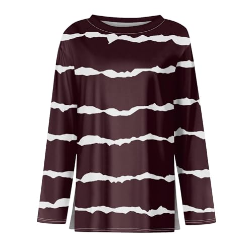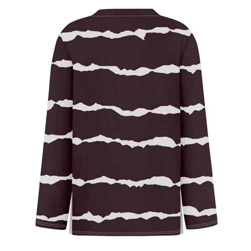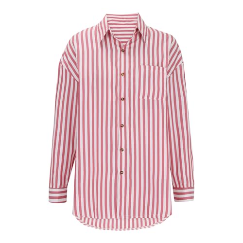 Women's Button Down T-Shirts Plus Size Long Sleeve Loose Fit Blouses Casual Trendy Striped Vacation Work Office Tops