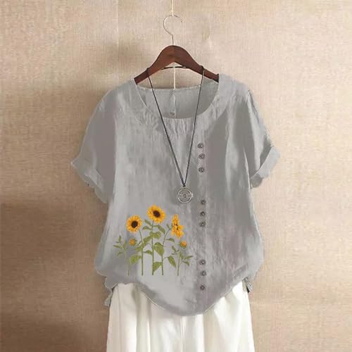 Striped Linen Shirt Women Women's Oversized T Shirt Crew Neck July 4th Tops Short Sleeve Shirt