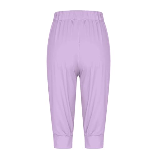 Petite Pants for Women Straight Leg Drawstring Waist Pleated Capris Solid Workout Gym Knee Length Shorts