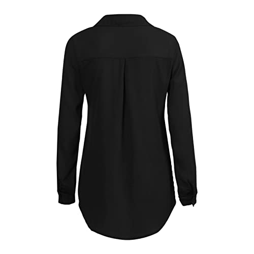 Elegant Shirt for Women Dressy Button Up Blouse Long Sleeve Lapel Blouses Flowy Chiffon Tops Work Office Clothes