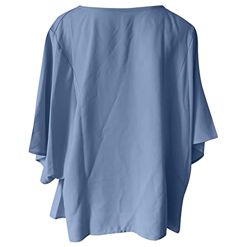 Half Sleeve Tops for Women Chiffon Blouses Business V Neck Elegant Shirts Trendy Loose Fit Dressy Office Tees Shirt