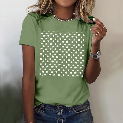 Graphic Tees for Women American Flag Element Short Sleeve Crewneck Tops Plus Size Blouses Casual Vacation Blouses