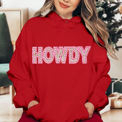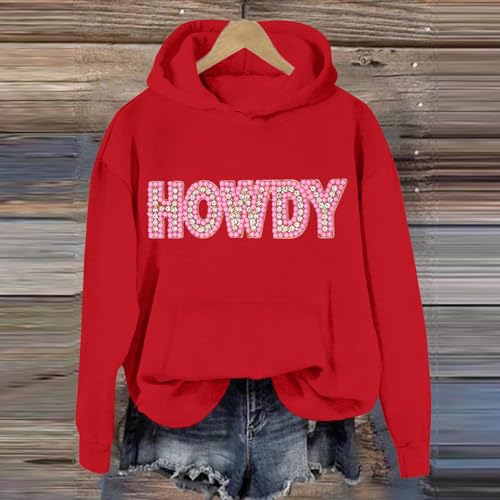 Womens Sweatshirt Long Sleeved Drawstring Zipperless HOWDY Letter Printed Trendy Hoodie Ladies Sweatshirts