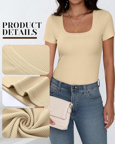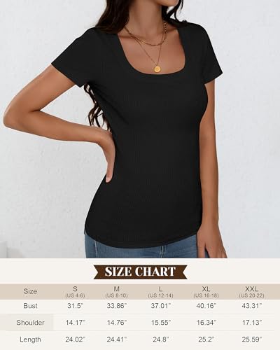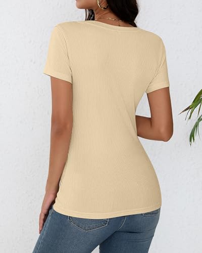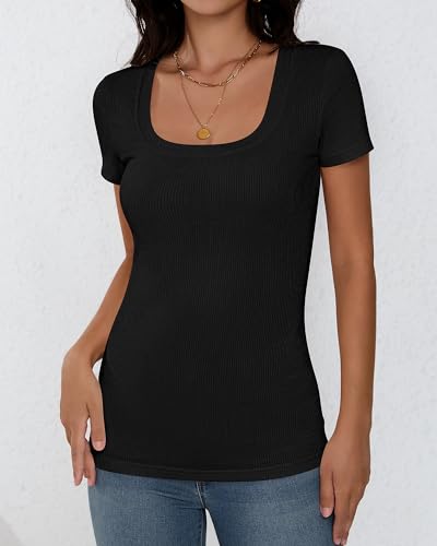 3 Pack Women's Short Sleeve Scooped Neck T Shirts Summer 2024 Tops Basic Ribbed Knit Tee Slim Fit Solid Color Shirt