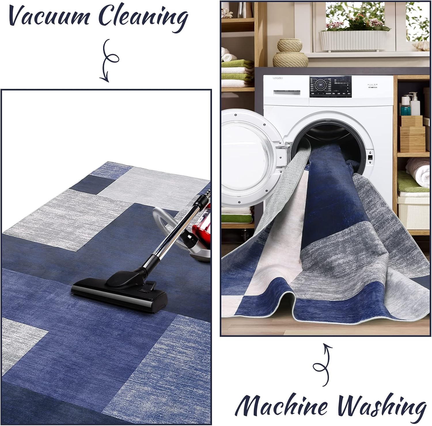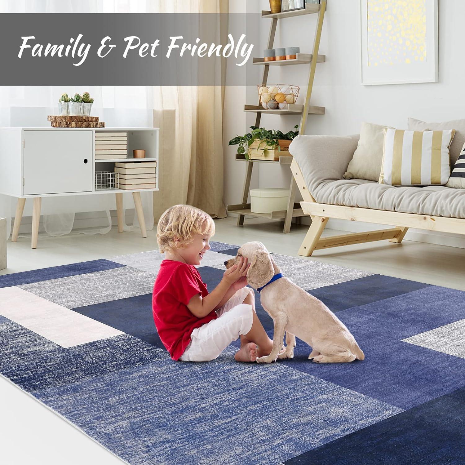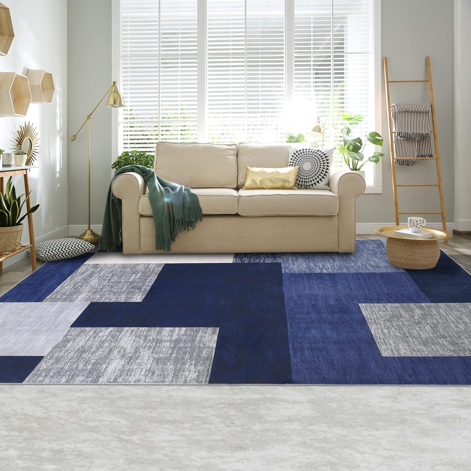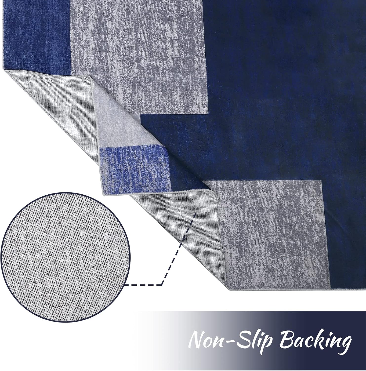 Large Modern Machine Washable Area Rug Low-Pile Non-Slip Stain Resistant Area Rug Contemporary Rug for Living Room, 8' x 10' Blue