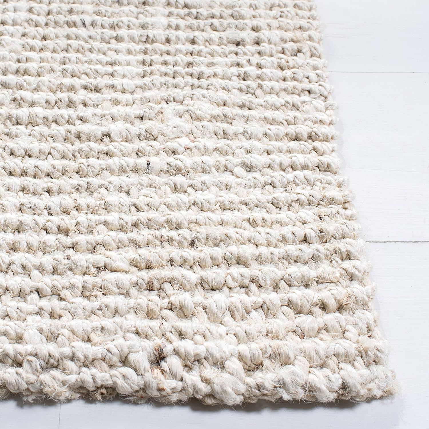 SAFAVIEH Natural Fiber Collection Area Rug - 9' x 12', Bleach & Ivory, Handmade Farmhouse Jute, Ideal for High Traffic Areas in Living Room, Bedroom (NF747B)