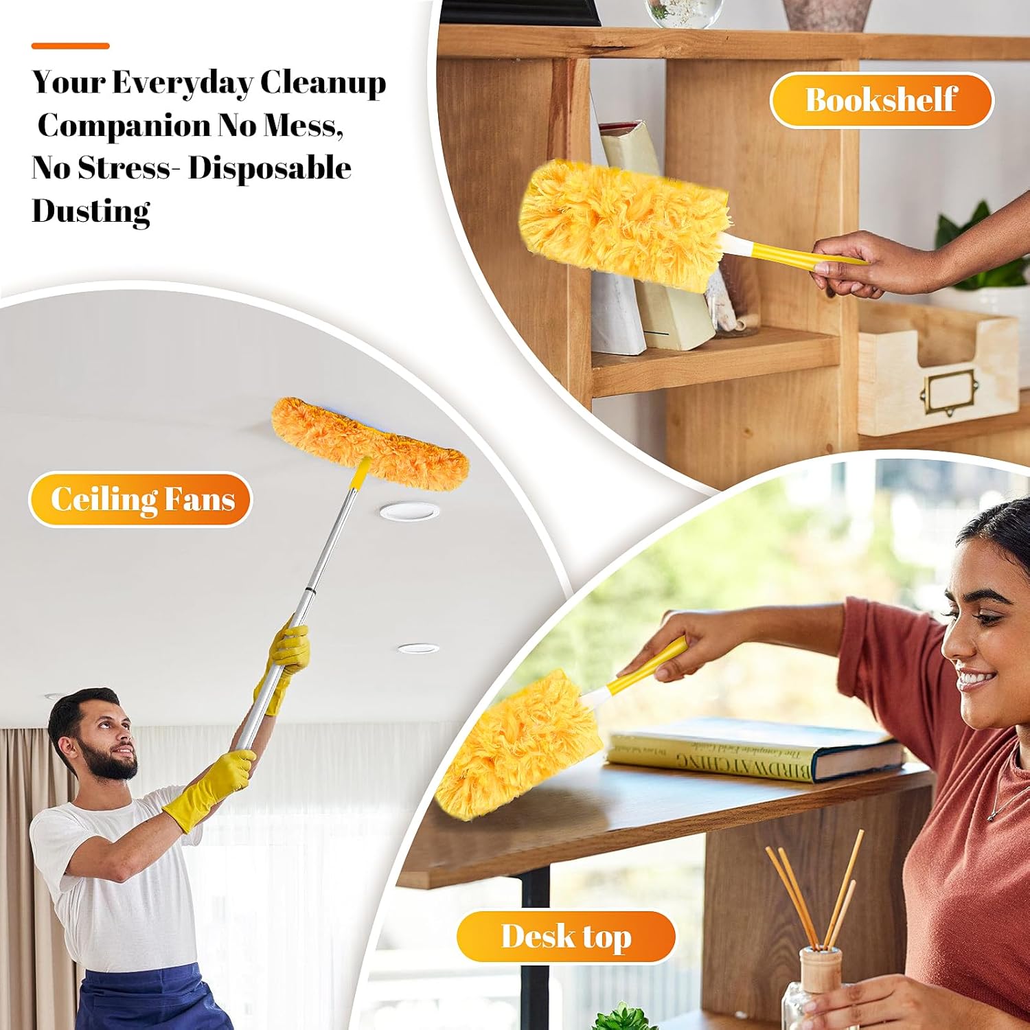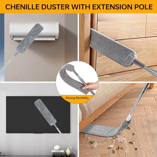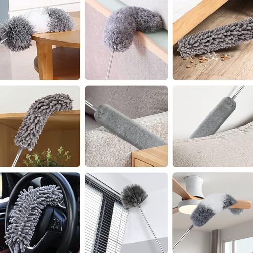 Dusters for Cleaning, 7Pcs Microfiber Duster with Extension Pole Up to 100Inches, Machine Washable Ceiling Fan Cleaner Duster for Cleaning Cobweb, Blinds, Furniture