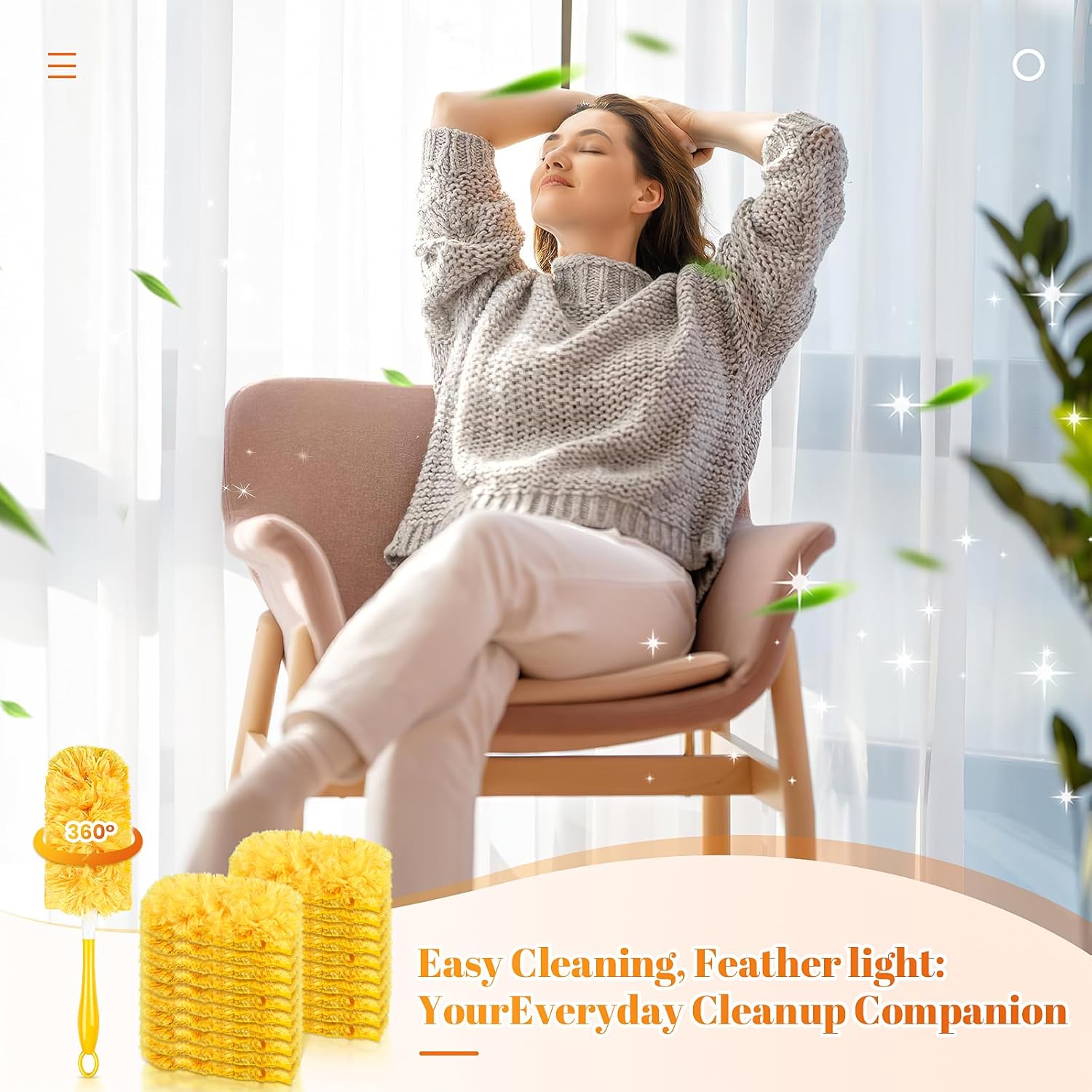 360° Duster Refills Kit for Swiffer Duster, 25 Pack & 1 Handle, Multi-Surface Dusters with 4X Microfibers. Efficient Duster Kit for Cleaning Pet hair, Home, Office, Blinds, Furniture and More