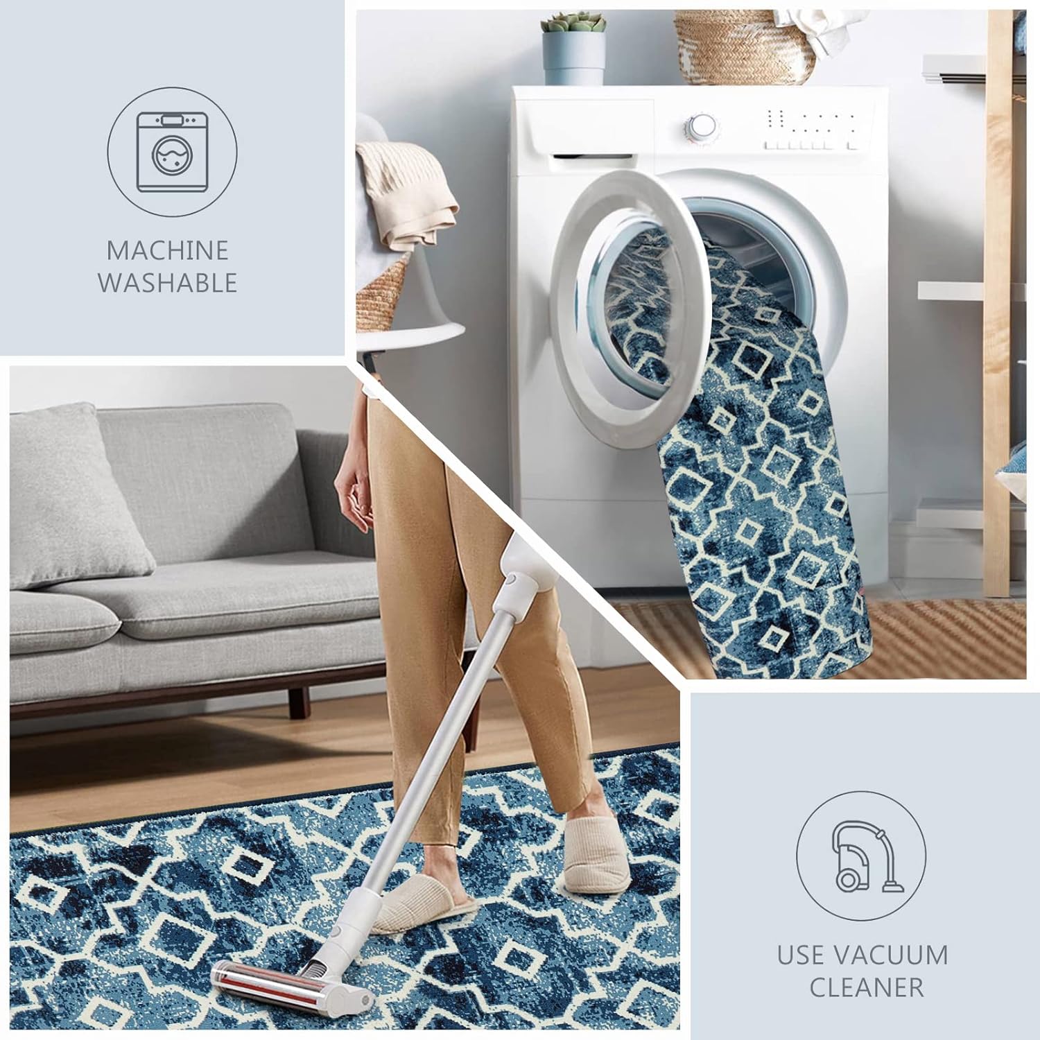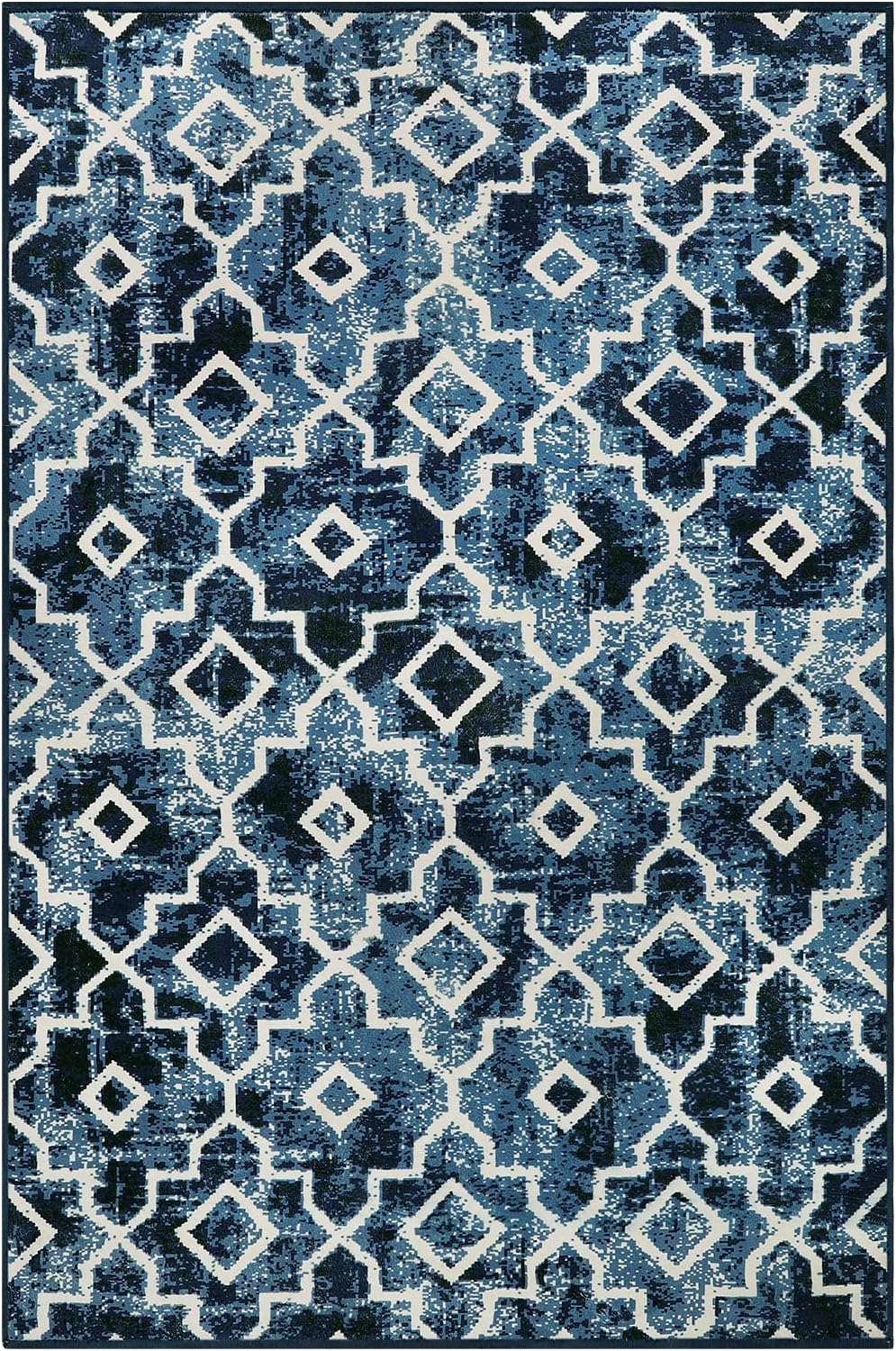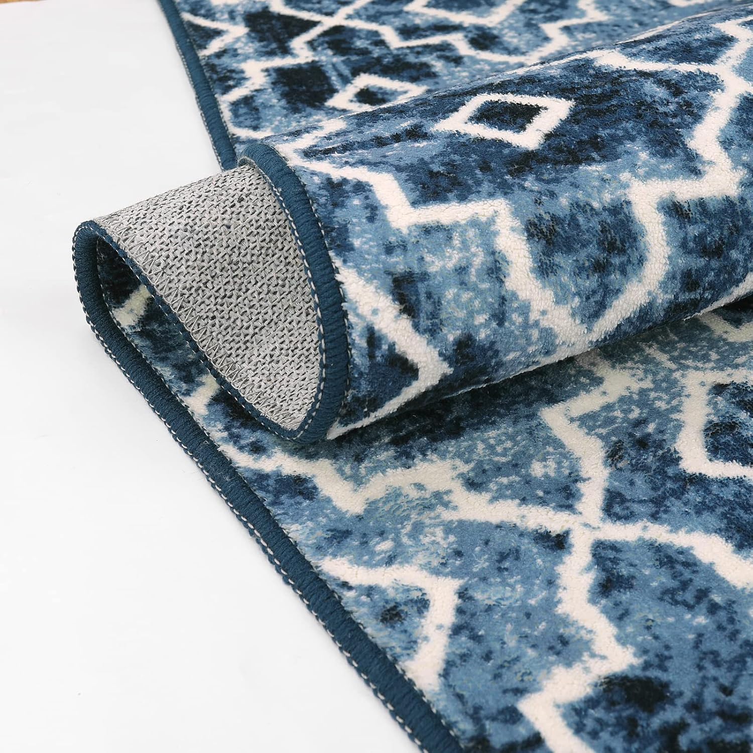 Wonnitar Moroccan Washable Area Rug Blue 4x6 Living Room Area Rug Geometric Contemporary Rug for Living Room Non-Slip Non-Shedding Dining Room Carpet for Office Kitchen Dorm (Post Blue,4'x6')