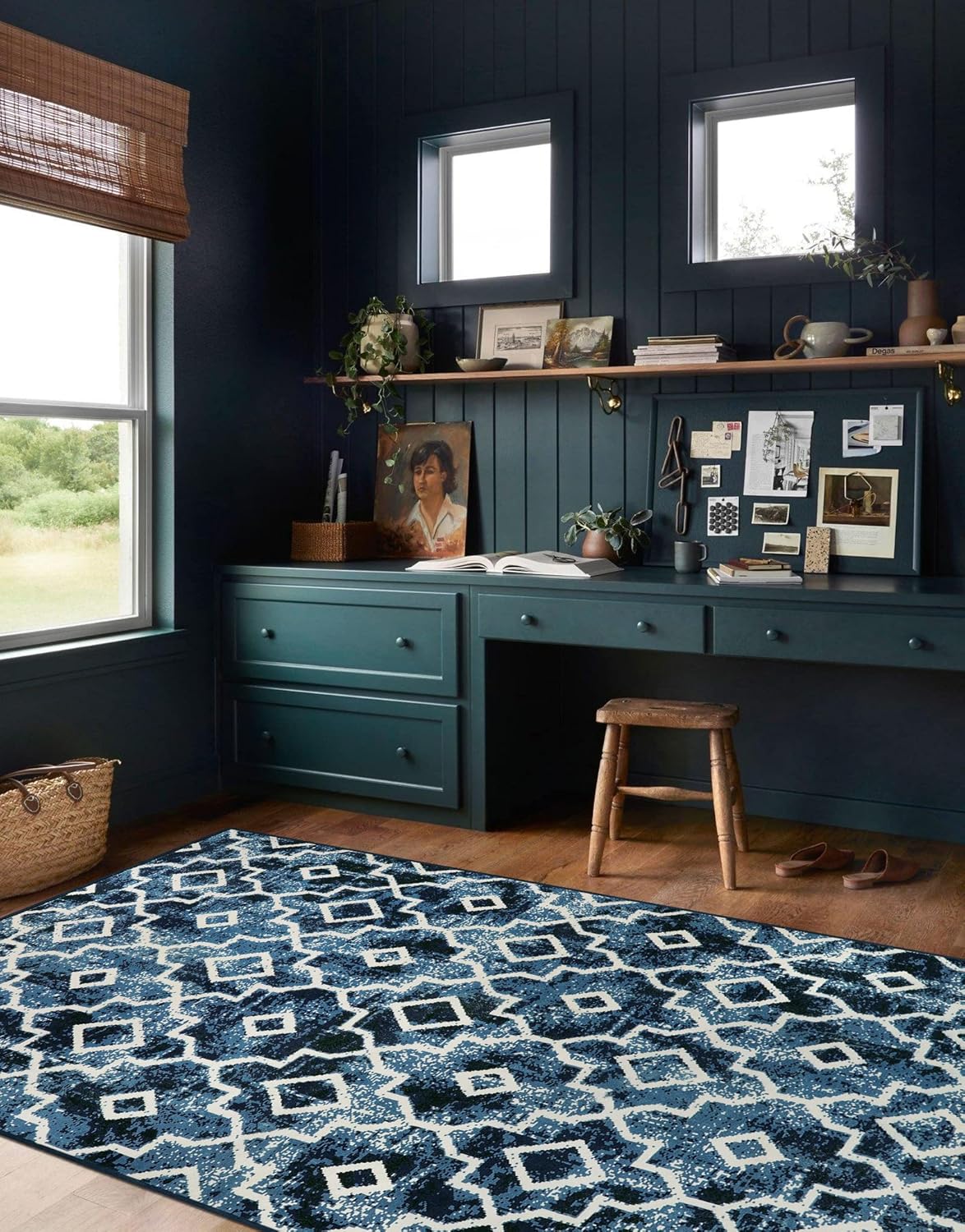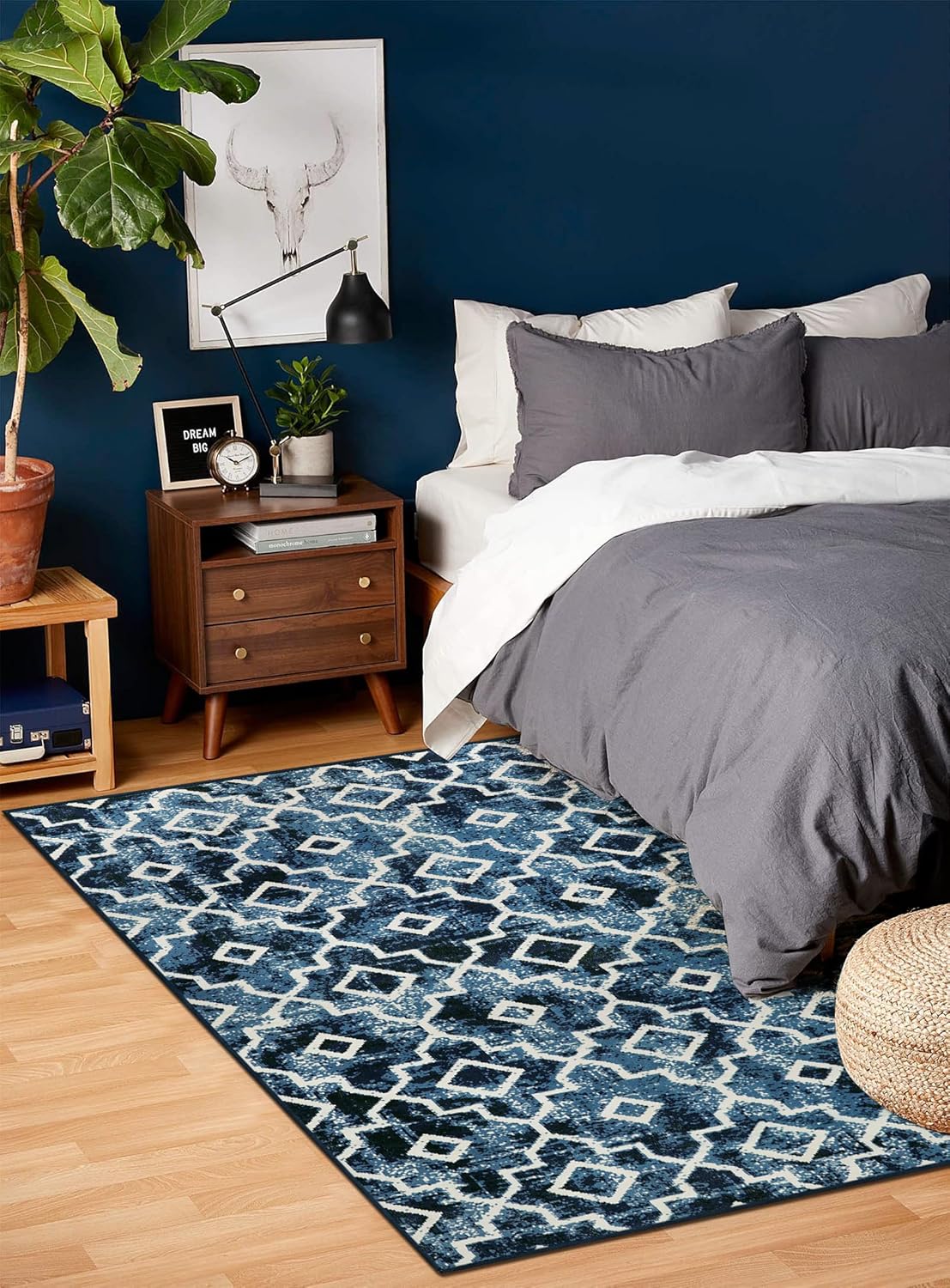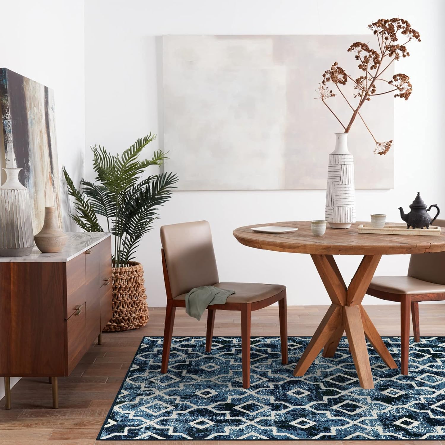 Wonnitar Moroccan Washable Area Rug Blue 4x6 Living Room Area Rug Geometric Contemporary Rug for Living Room Non-Slip Non-Shedding Dining Room Carpet for Office Kitchen Dorm (Post Blue,4'x6')