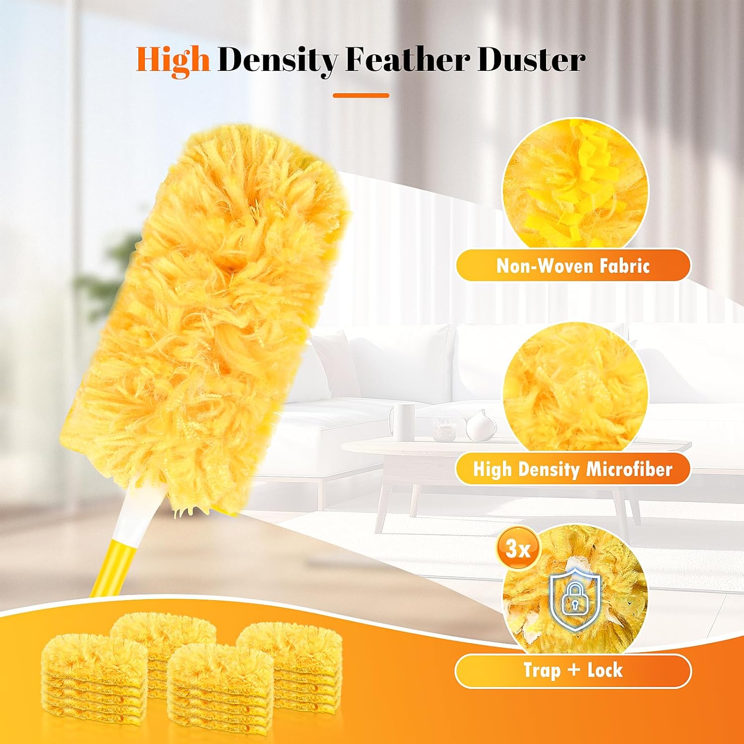 20 Count 360 Duster Pads for Swiffer Duster Refill, Multisurface Heavy Duty Duster Replacements with 1 Handle, Disposable Feather Dusters for Cleaning