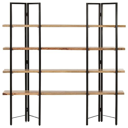 vidaXL Solid Mango Wood 4-Tier Bookshelf - Industrial Style Bookcase with Powder-Coated Iron Frame and Distinct Wood Grain - Easy Assembly