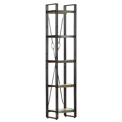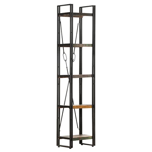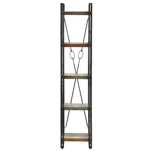 SKM 5-Tier Bookcase Book Shelf for Storing and Displaying Book Collection, Magazines, Documents, Photo Frames and Collectables Solid Wood and Steel Structure 23.6" x 11.8" x 70.9" Solid Mango Wood
