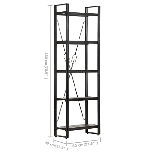 5-Tier Bookcase Black 23.6"x11.8"x70.9" Solid Mango Wood,Industrial 5Tier Wooden Bookcase for Storage and Display Bookcases & Standing Shelves