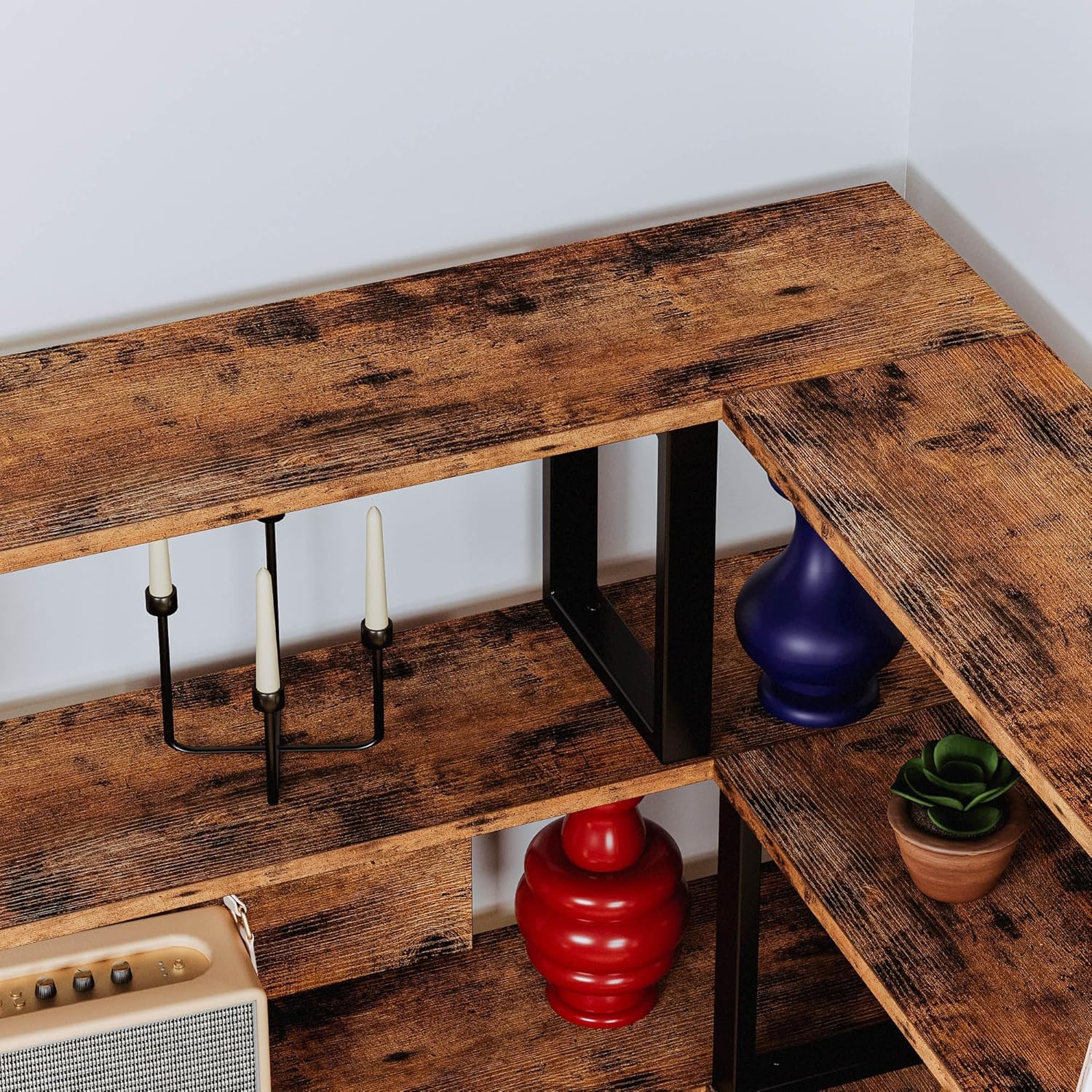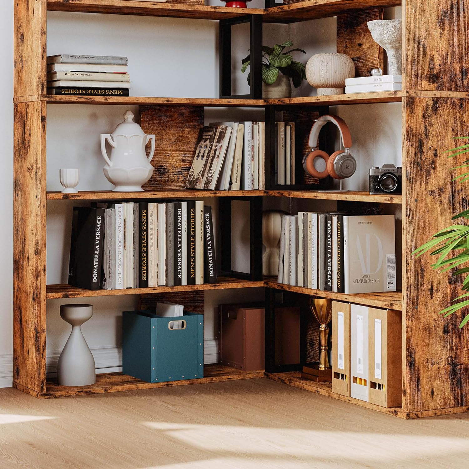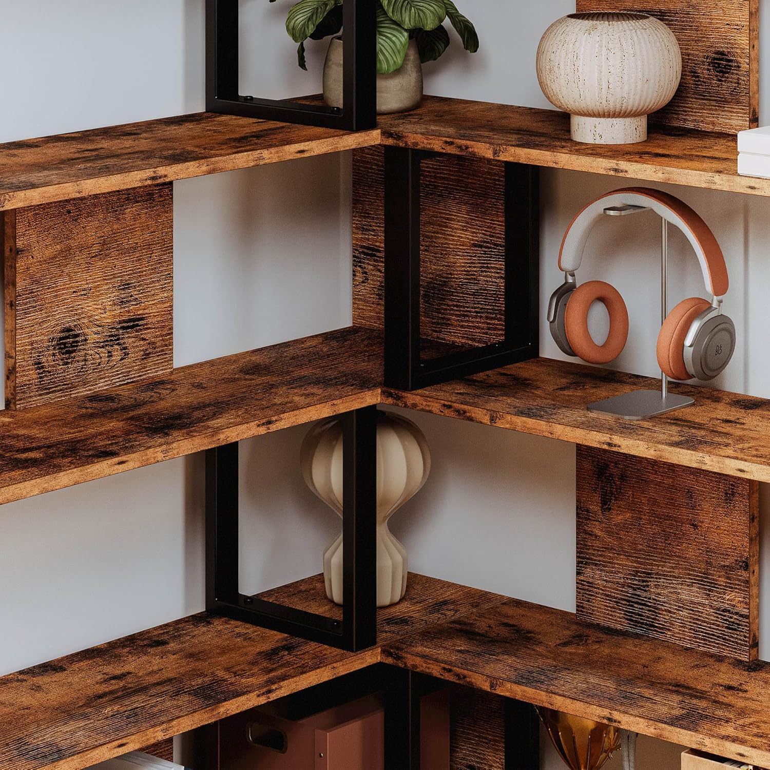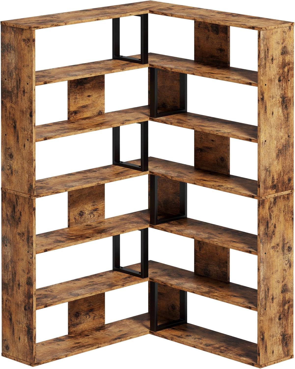 IRONCK Bookshelves 6-Tier with Industrial Large Corner Etagere Shelf Bookcases Display Storage Shelves for Home Office, Living Room, Bed Room, Vintage Brown