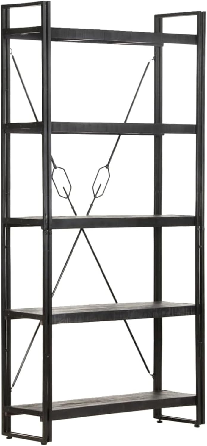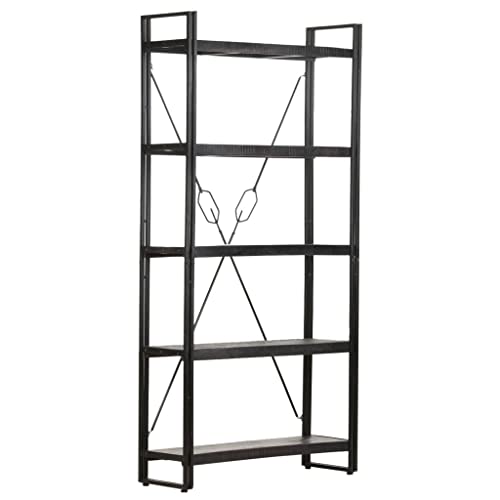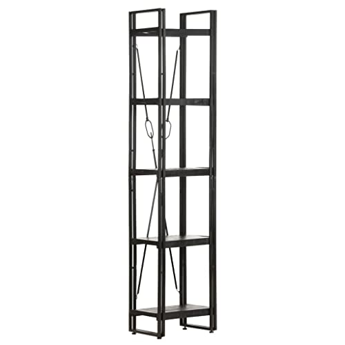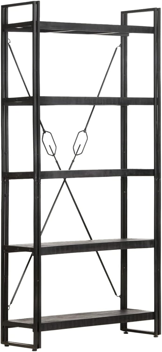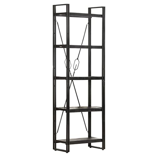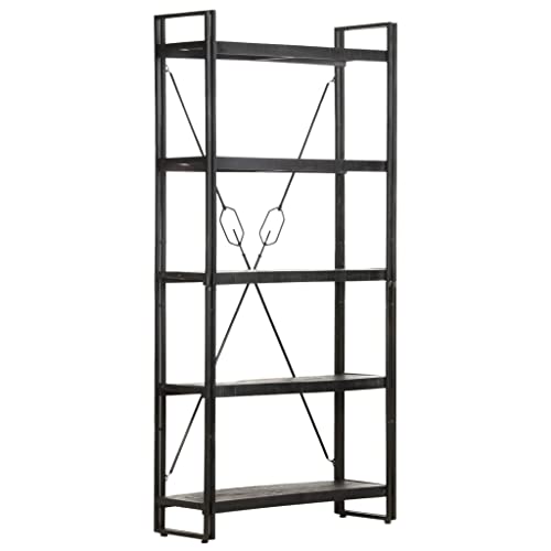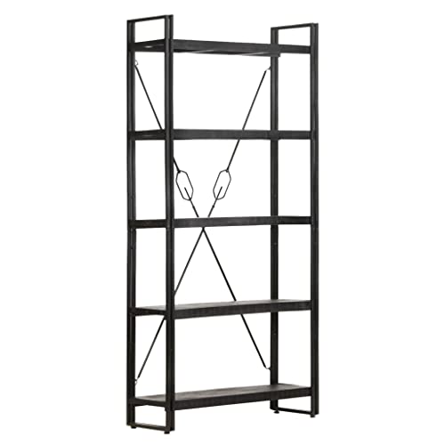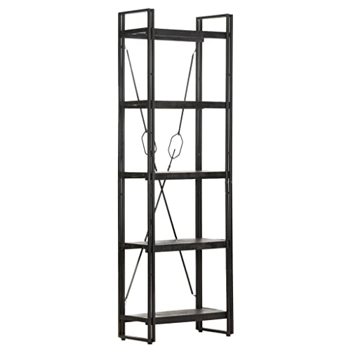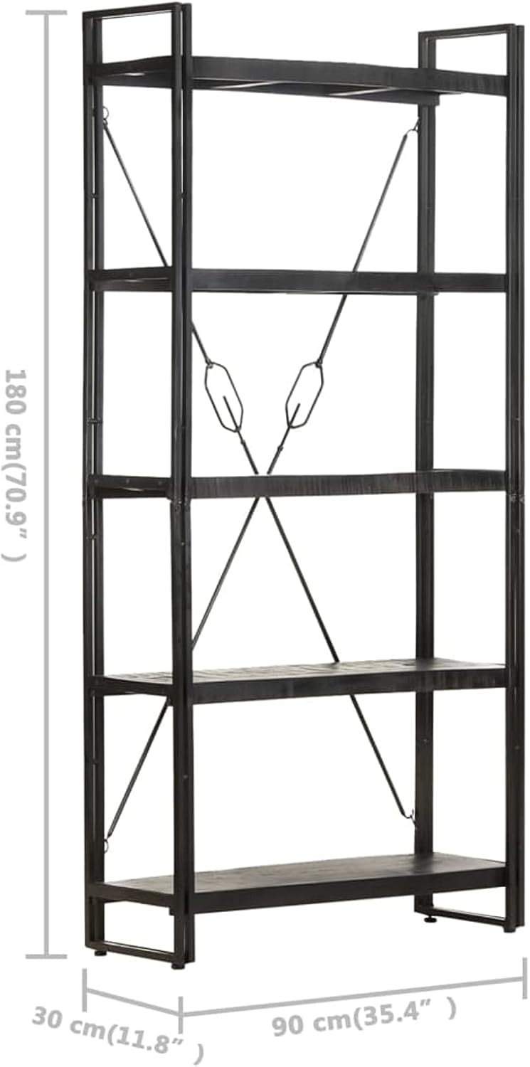 5-Tier Bookcase,Industrial Bookshelf,Standing Storage Shelf, Shelving Units and Storage,Plant Rack,Media Storage Cabinet,for Living Room,Kitchen,Office, Black 23.6"x11.8"x70.9" Solid Mango Wood