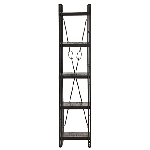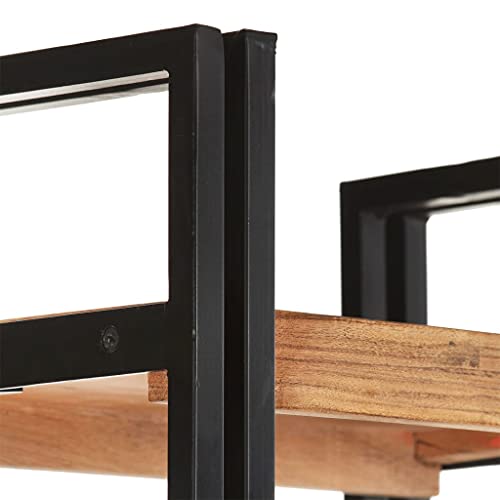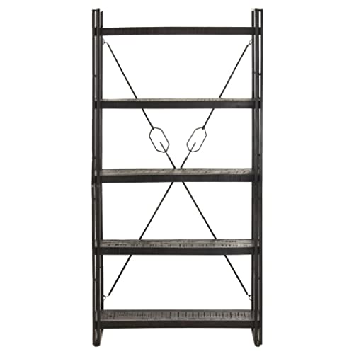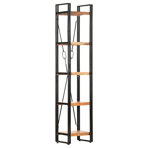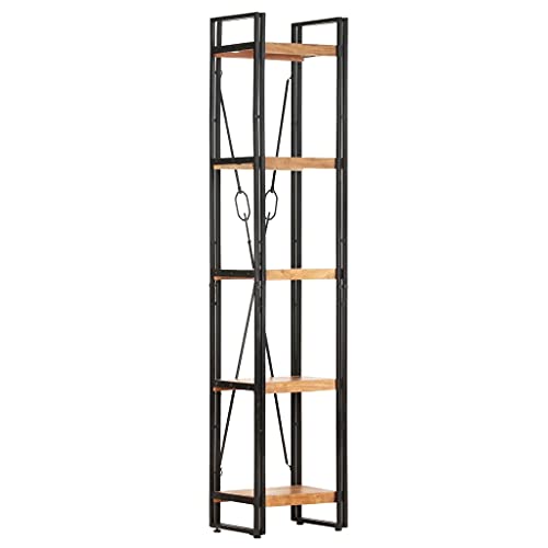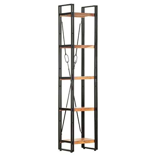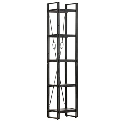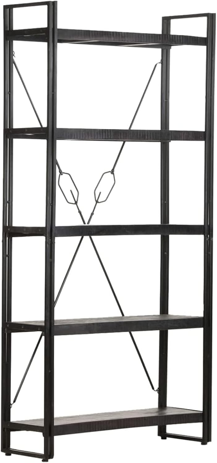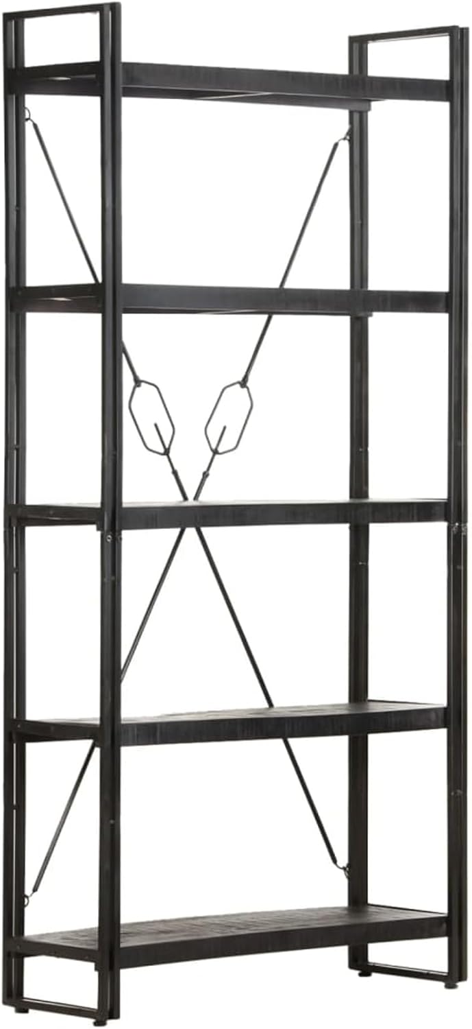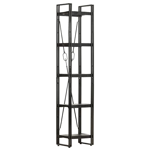 5-Tier Bookcase,Industrial Bookshelf,Standing Storage Shelf, Shelving Units and Storage,Plant Rack,Media Storage Cabinet,for Living Room,Kitchen,Office, Black 23.6"x11.8"x70.9" Solid Mango Wood