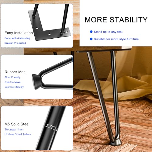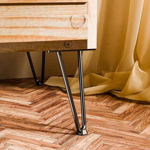 10 Inch Hairpin Furniture Legs(900Lbs),Heavy Duty Hairpin Table Legs, Solid Metal Table Legs,DIY Projects for TV Stand,Cabinet, Coffee Table, Desk etc with Rubber Floor Protectors Black 4PCS