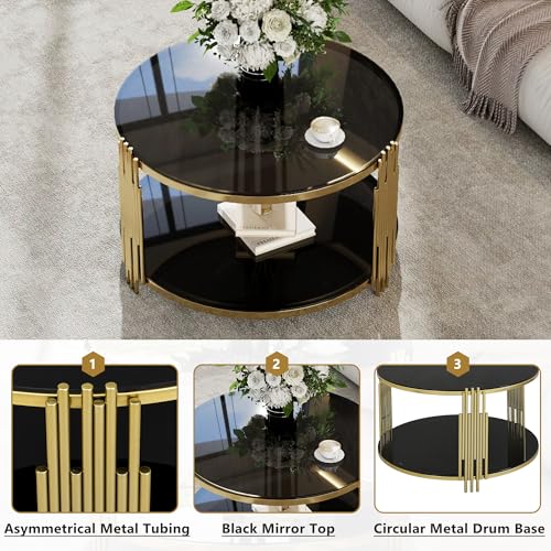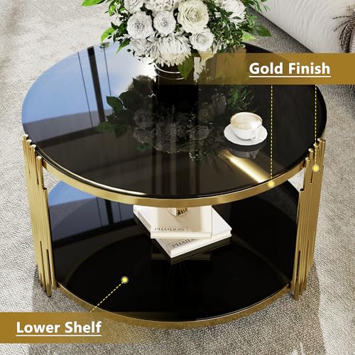 Brown Glass Coffee Table Round Gold Modern Luxury Living Room Table 31.5 Inch, Stainless Steel Irregular Leg Tempered Glass Top, Sofa Center Cocktail Table for Home Office, Brown