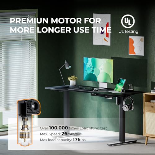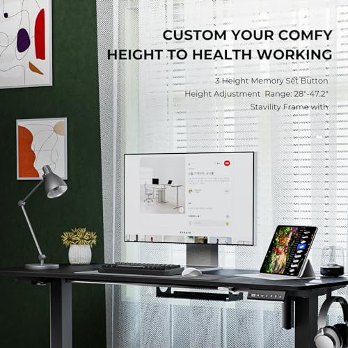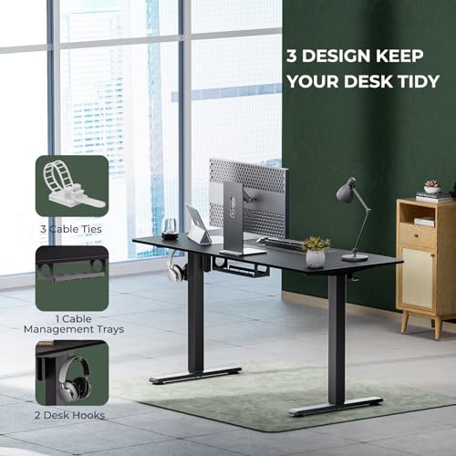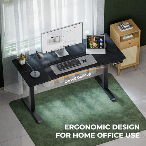 Electric Standing Desk,Adjustable Height Desk With Curved Desktop, Stand Up Desk With 2 Metal Hooks & Cable Organizer Box, Powerful Motor For Fast Switch From Sit To Stand Position 55x24 Black