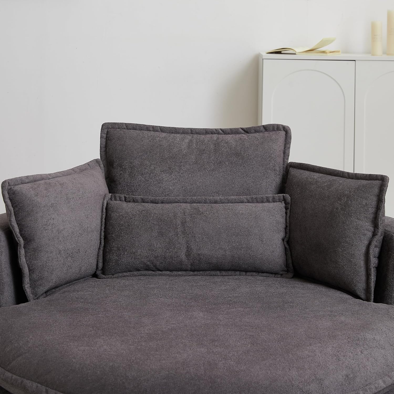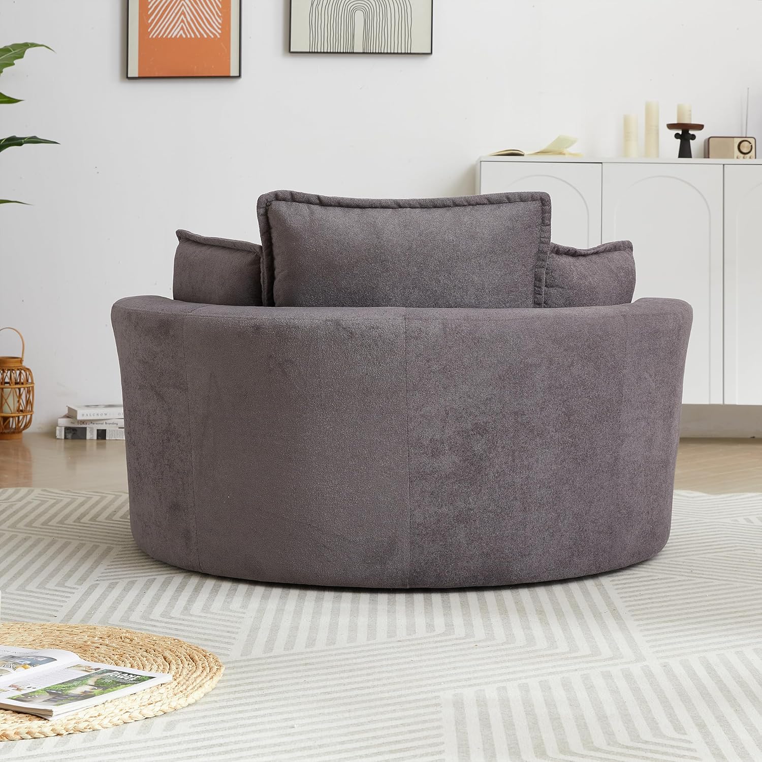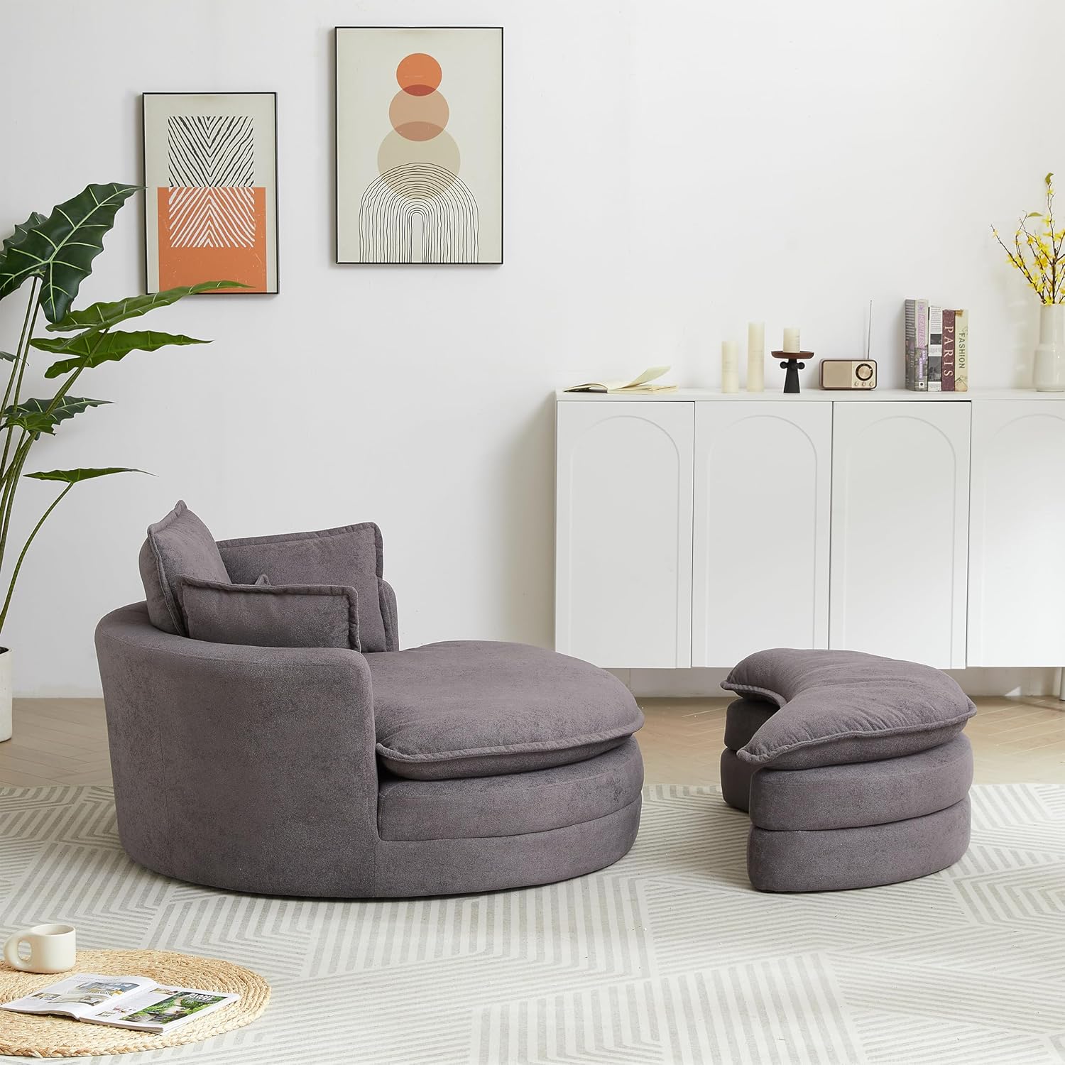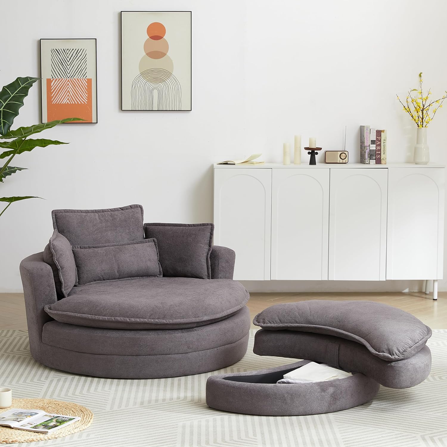 360-Degree Swivel Barrel Chair with Storage Ottoman,Modern Oversized Round Accent Leisure Armchair with 4 Pillows, Comfy Chenille Fabric for Living Room,Hotel,Club Lounge Sofachair, Grey 52“W