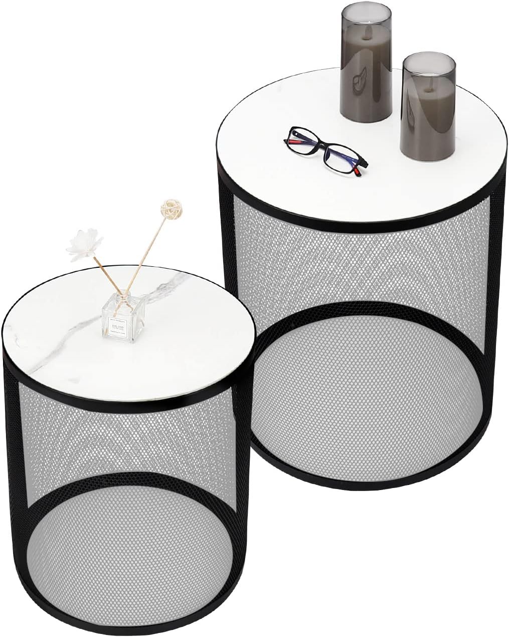 Modern Round Coffee Table Set of 2, Mutifunctional Tea Table, Circle Side Table for Small Space, Black Metal End Table, Center Table, Nightstand, Accent Furniture for Living Room Bedroom Office
