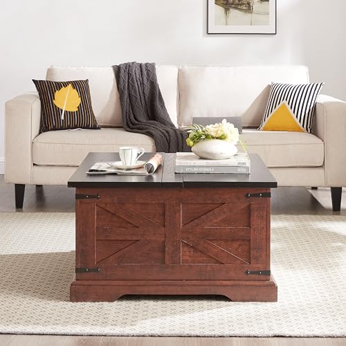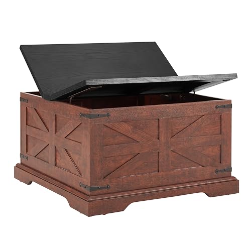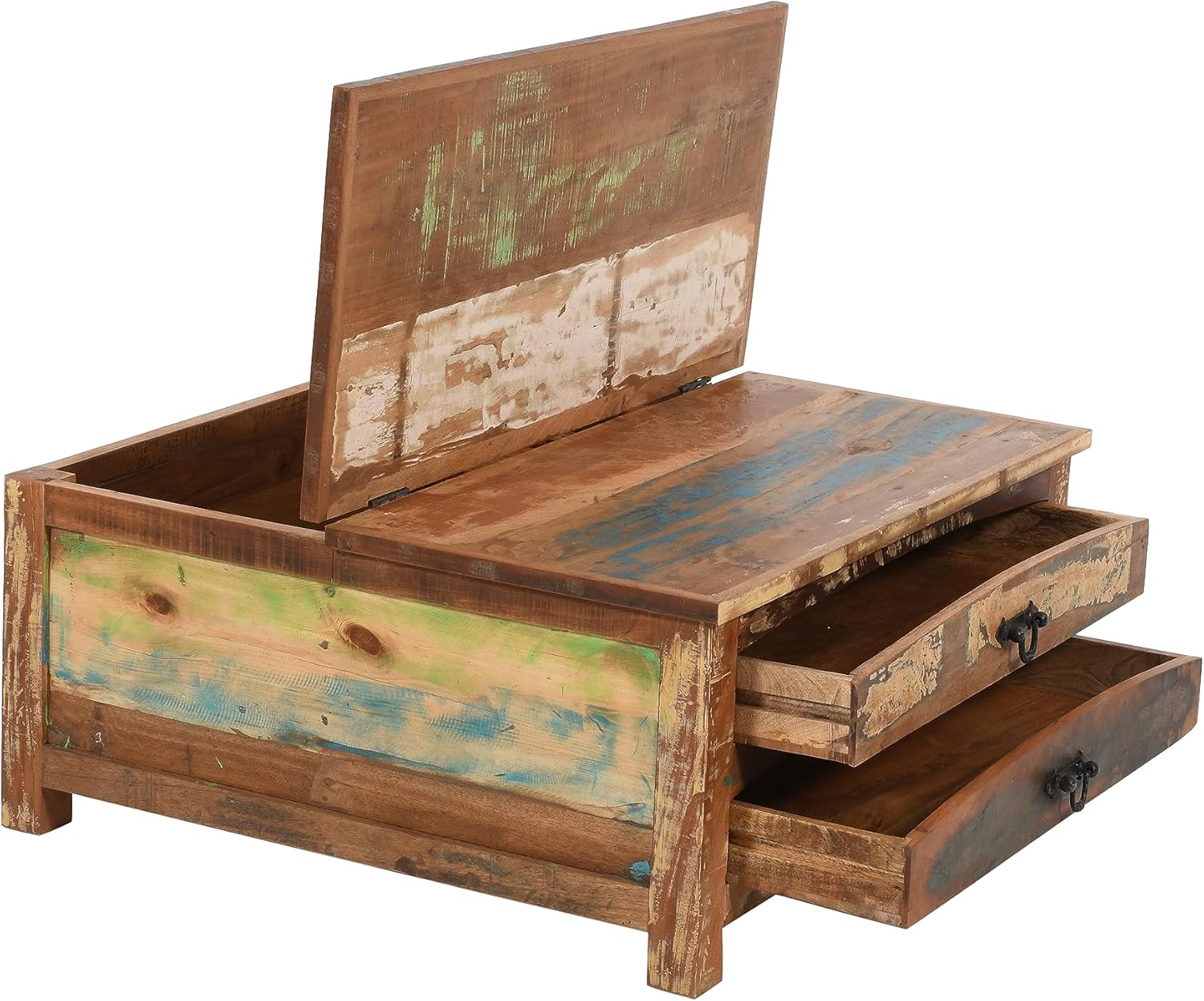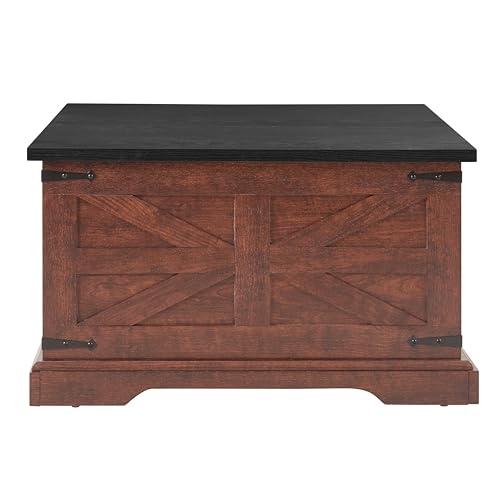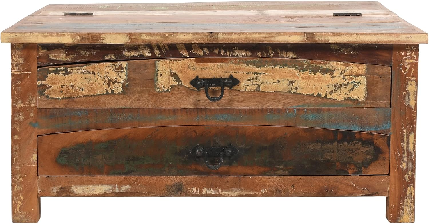 Sundara Furnishings Handcrafted Solid Reclaimed Wood Coffee Table with Two Drawers and Hidden Trunk Storage Rustic Square Center Table for Living Room, Office
