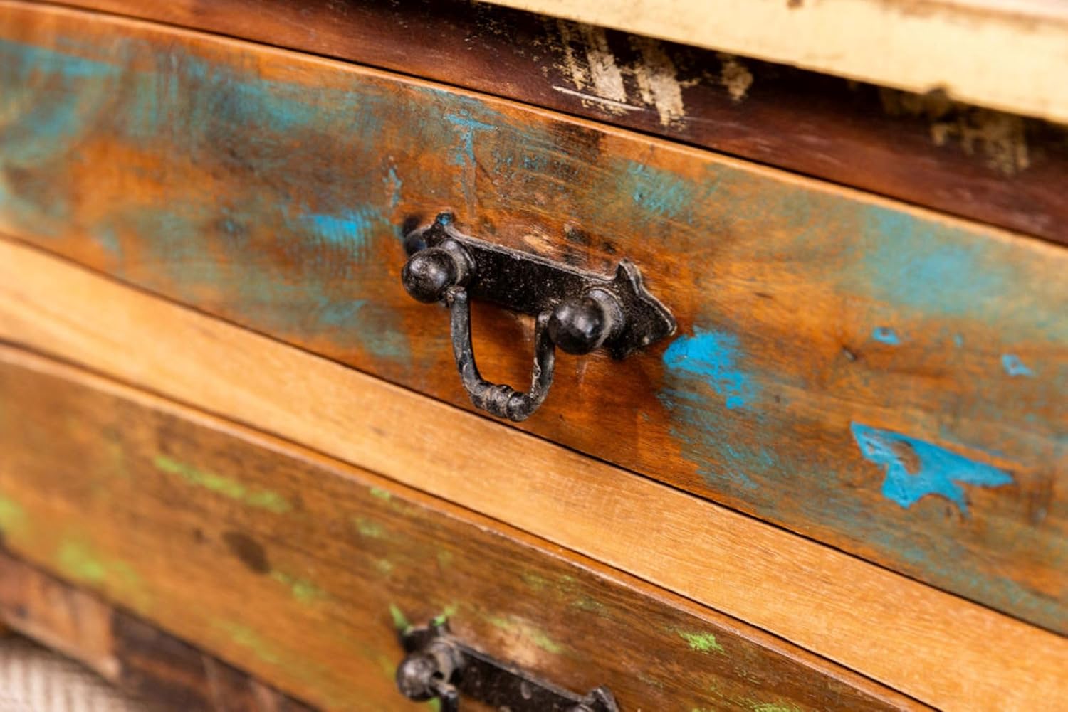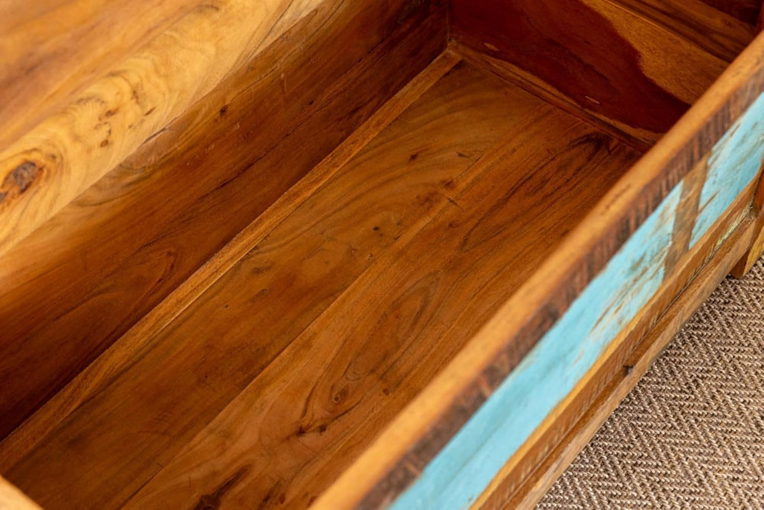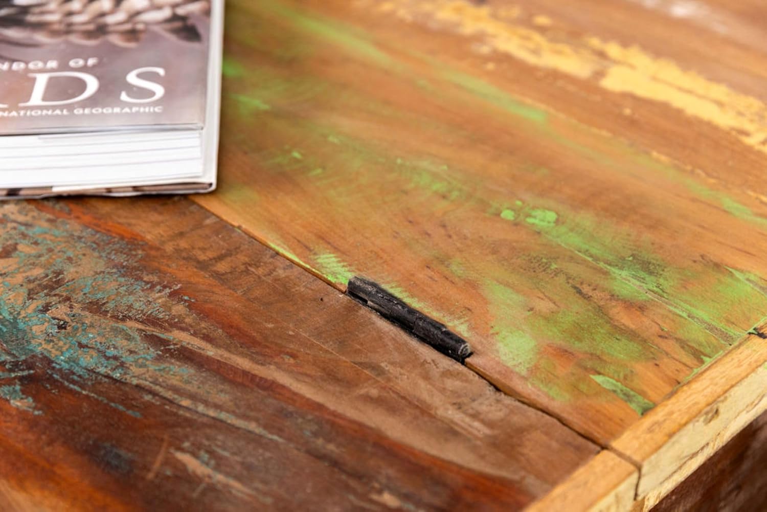 Sundara Furnishings Handcrafted Solid Reclaimed Wood Coffee Table with Two Drawers and Hidden Trunk Storage Rustic Square Center Table for Living Room, Office
