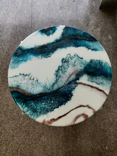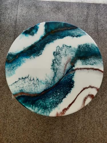 Beautiful White & Blue Round Epoxy Coffee Table Living Room Table Office Table Patio Table Coastal Table Hallway Table Centre Table Side Table Home Decor (30 Inches Tall, 46 x 46 Inches)