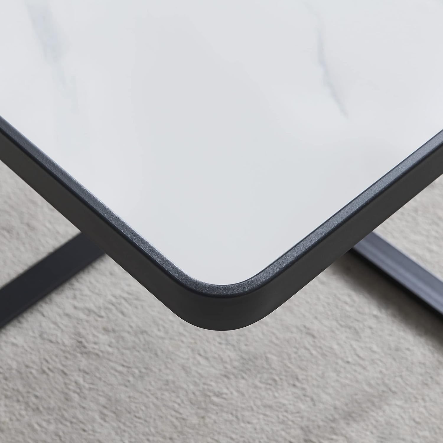 Square Coffee Table with Sintered Stone Tabletop, Minimalist Center Table with Black Metal Frame, Sofa Side Tea Table for Living Room or Office Furniture