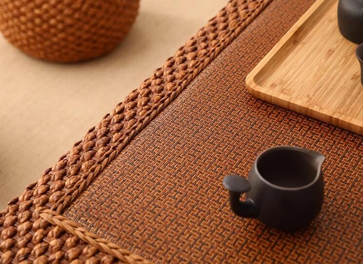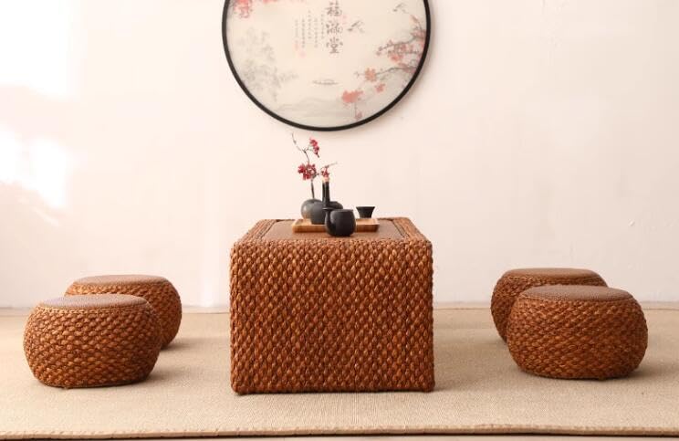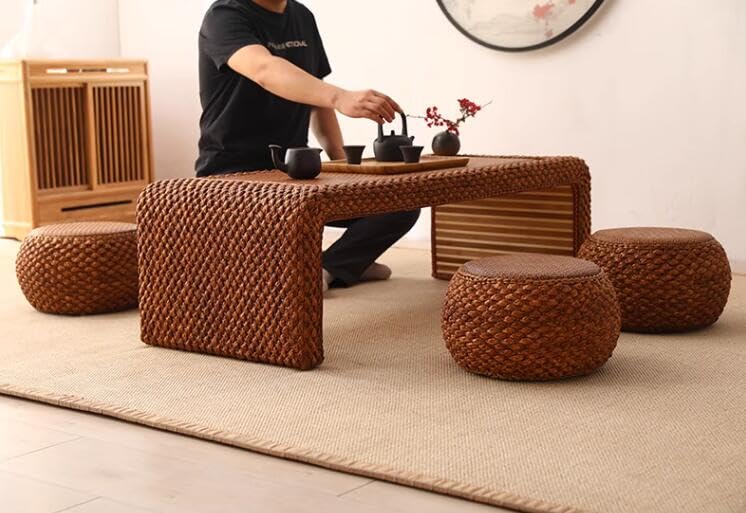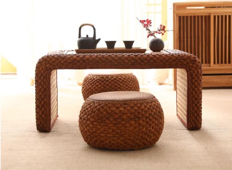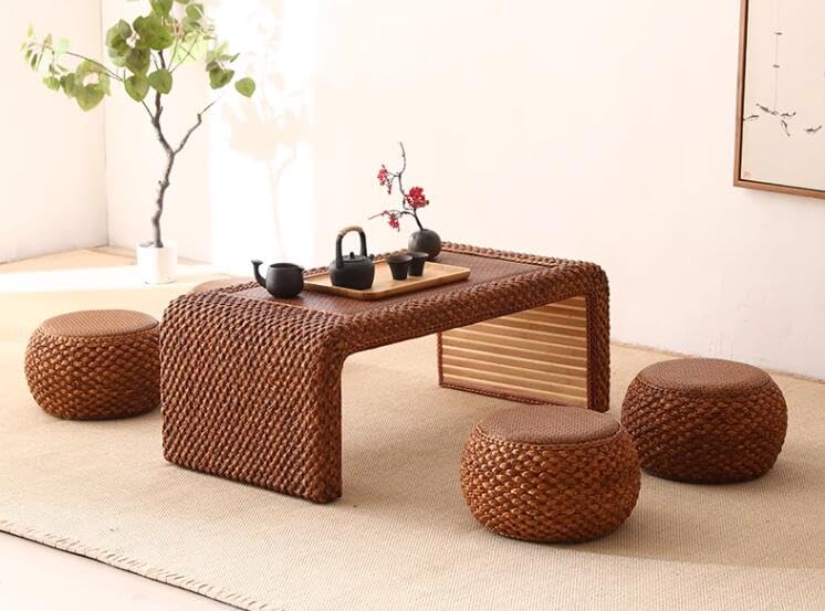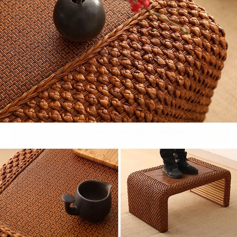 Straw Tea Table Hand-Woven Rattan Top Japanese Style Tatami Center Table for Sitting On The Floor Accent Furniture Home & Office (Natural Color, 100x50x38cm)