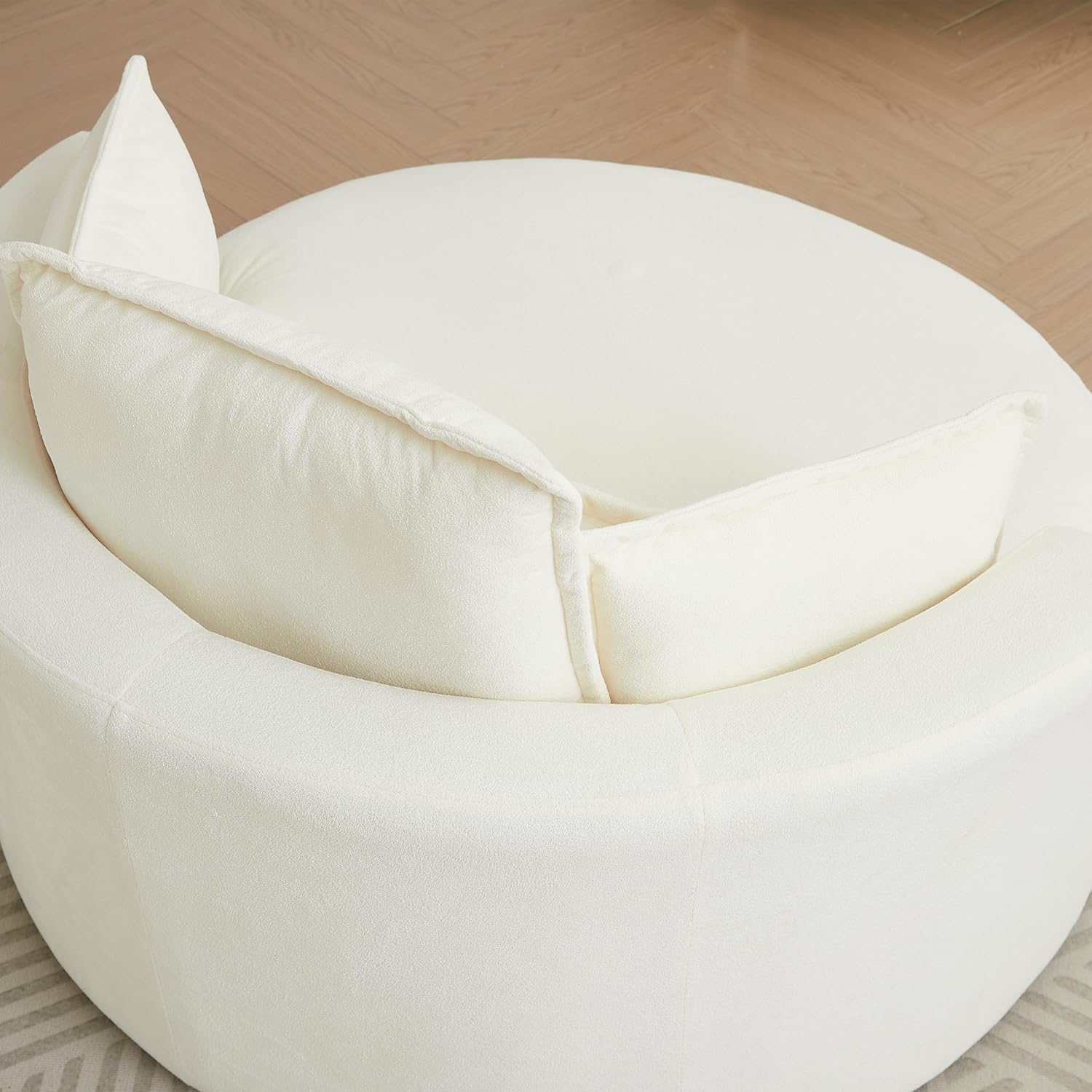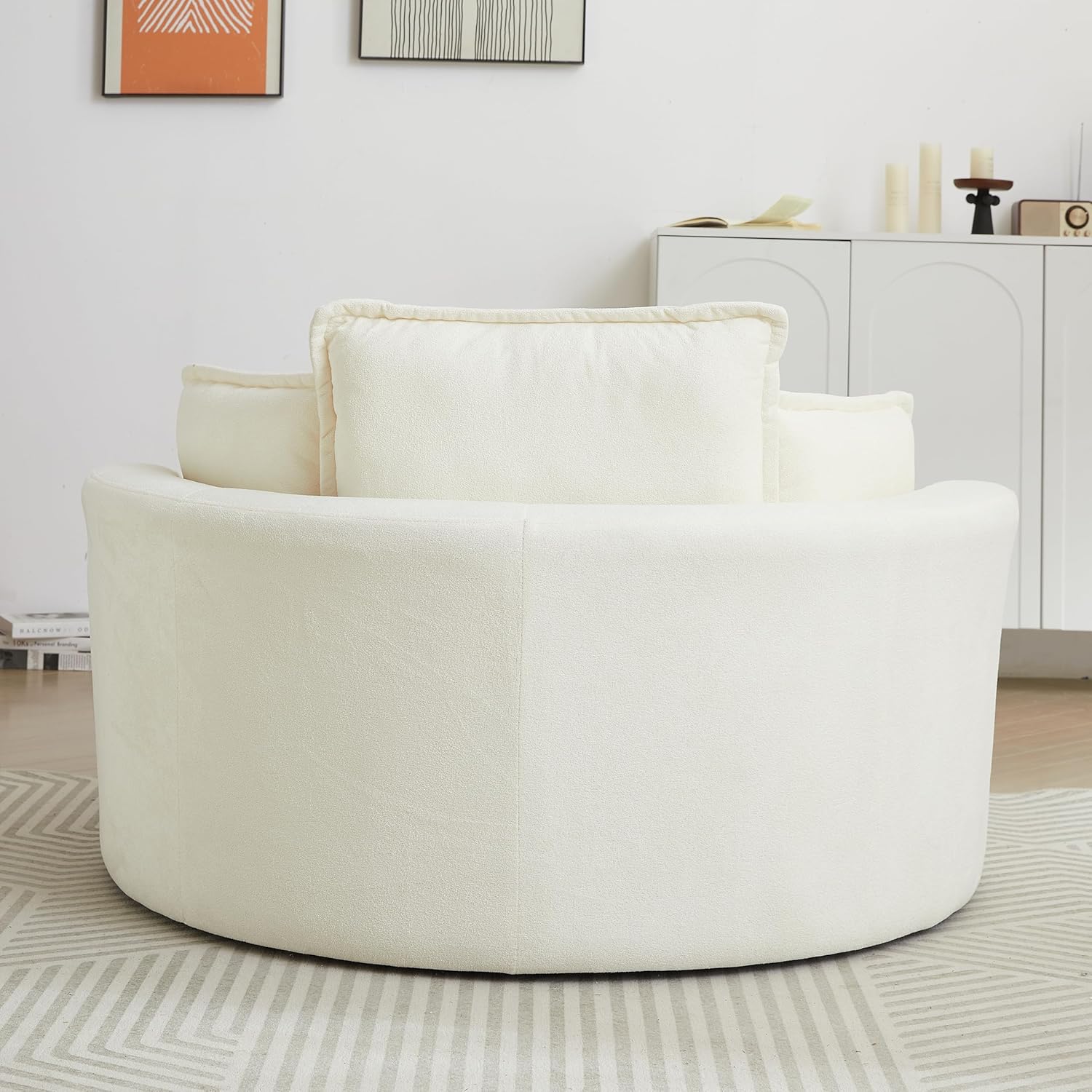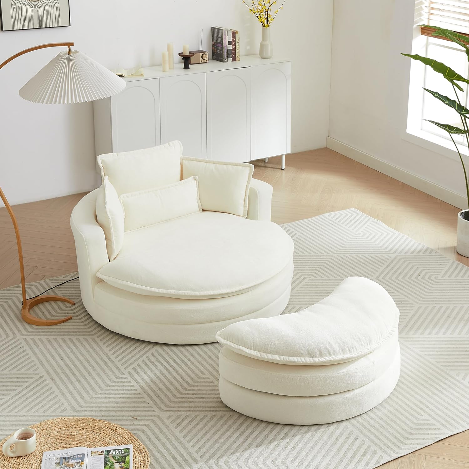360-Degree Swivel Barrel Chair with Storage Ottoman,Modern Oversized Round Accent Leisure Armchair with 4 Pillows, Comfy Chenille Fabric for Living Room,Hotel,Club Lounge Sofachair, Beige 52“W