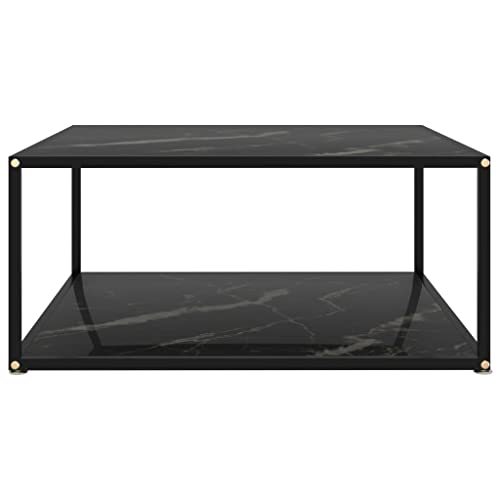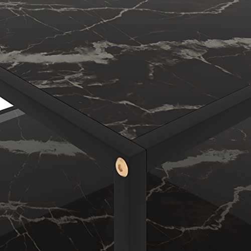 Coffee Table Black,Office Tea Desk,Living Room Center Table,Dining-Table,Rectangle Table,Features 2 Layers,Assembly Required,Used as a Den, Office Room, 23.6"x23.6"x13.8" Tempered Glass