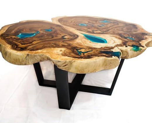 Exotic Round live Edge Coffee Table with Glowing Resin Living Room Table Dinning Table Home Office Table Center Table Console Table End Table Side Table Home Décor (18" Inches Tall, 36 x 36 Inches)
